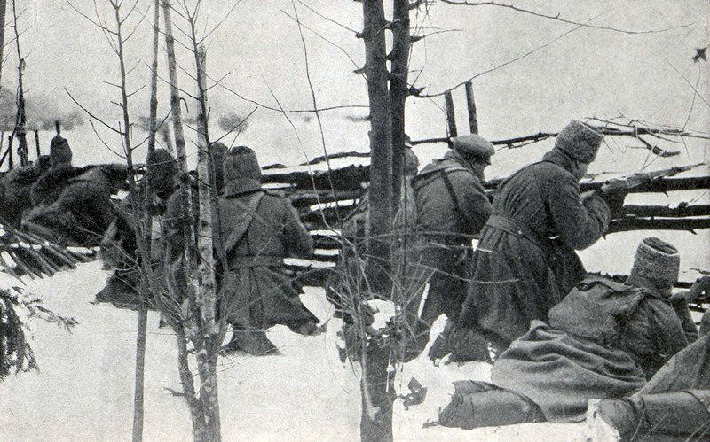 전쟁 중 육군의 고위 부대에는 서부 전선, 북서부 전선 및 루마니아 전선이 있었다.[13] 동부 전선에서의 전쟁은 1914년 동프로이센과 오스트리아-헝가리령 갈리치아 침공으로 시작되었다.[13] 전자는 탄넨베르크 전투 (1914년)에서 독일 제국에 대한 러시아의 패배로 끝났다.[13] 서부에서는 1915년 러시아 원정군이 프랑스로 파견되었다.[13] 1917년 러시아 혁명의 와중에 제국 러시아 육군은 붕괴되고 해산되었다.[13] 제국 육군의 반란 잔당은 새로운 붉은 군대의 일부가 되었다.[13]