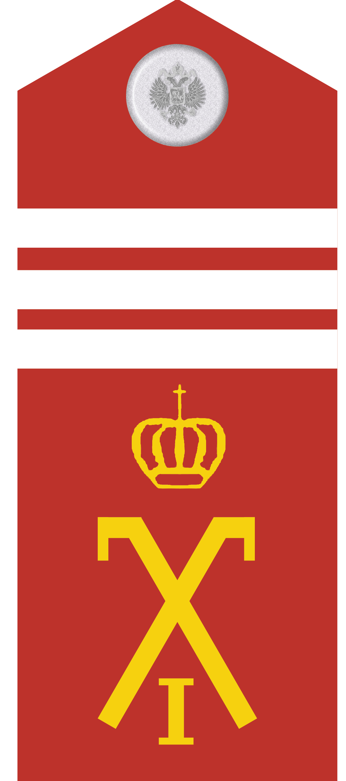 스타르시 운테르-오피체르/старшій унтеръ-офицеръru (중사) | 스타르시 페예르베르케르/старшій фейерверкеръru (중사) | 스타르시 운테르-오피체르/старшій унтеръ-офицеръru (중사) | 스타르시 우랴드니크/старшій урядникъru | ![]() |