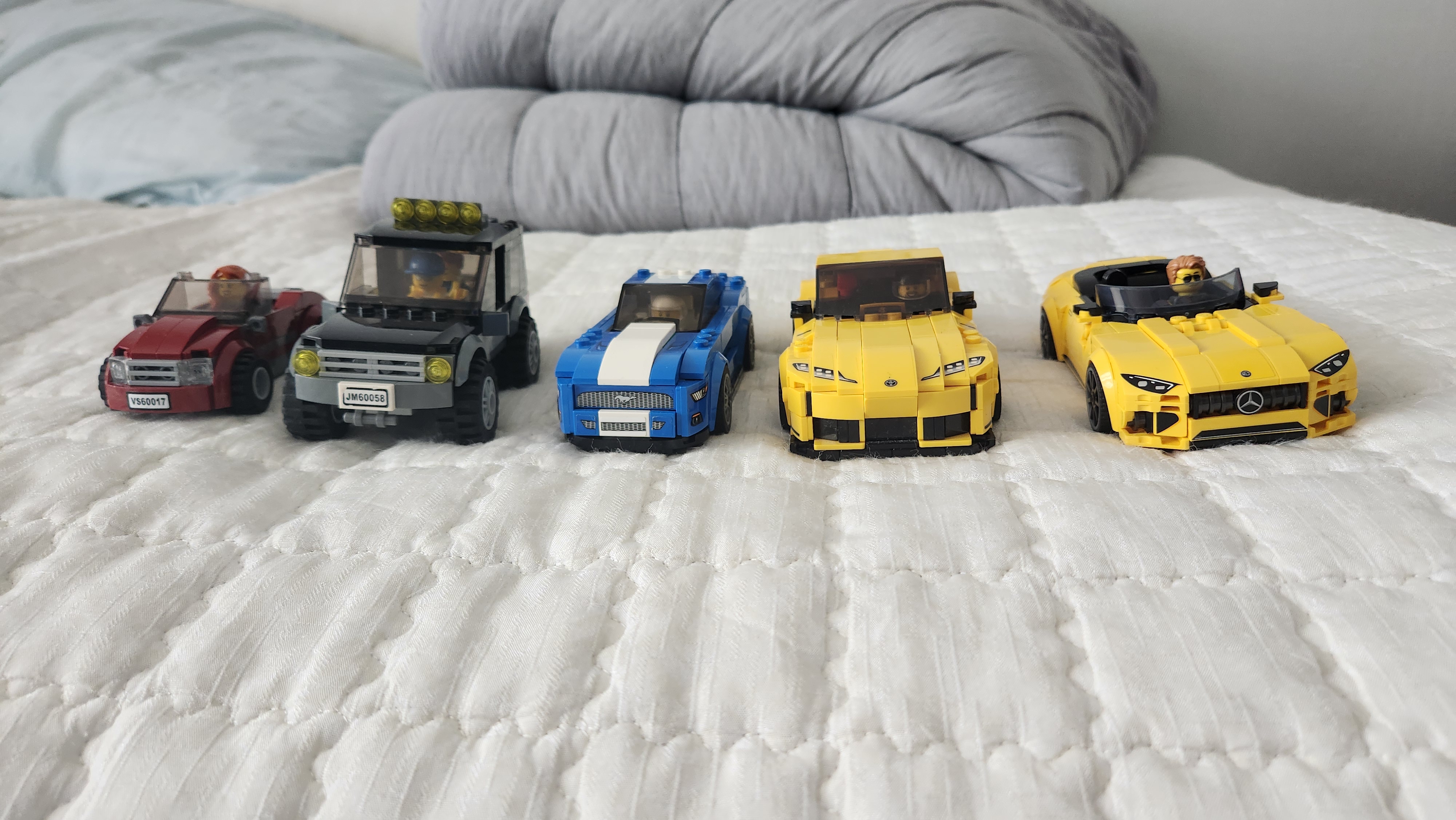 - '''76901 토요타 GR 수프라''' ※ 레고가 출시한 최초의 토요타 제품이자 GT-R 다음으로 나온 두 번째 동아시아 차량이다. 헤드라이트가 3등분으로 갈라져 있어 호불호가 갈린다.