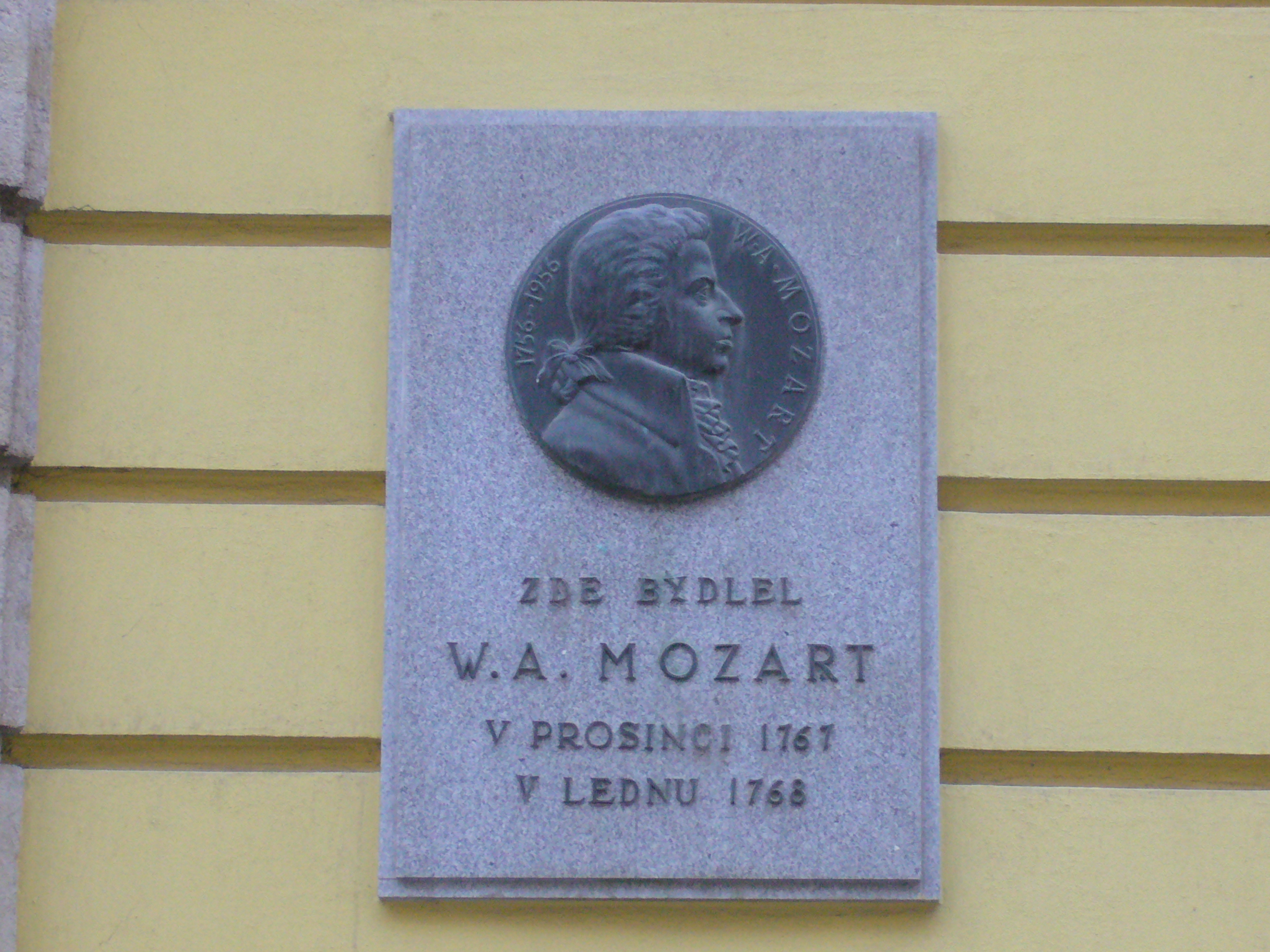 1767년 10월, 천연두 유행으로 레오폴트 모차르트와 그의 자녀 볼프강과 난넬은 빈에서 탈출하여 그들의 후원자인 잘츠부르크 대주교 지기스문트 폰 슈라텐바흐의 형제에게 보호를 요청했다.[4] 10월 25일, 백작 프란티셰크 안토닌 슈라텐바흐는 브르노에서 모차르트 가족을 만났고, 볼프강과 난넬의 공연을 즉시 계획하기 시작했다. 그러나 레오폴트 모차르트는 여행을 계속하기로 결정하고 가족과 함께 올로모우츠로 향했다. 불행히도, 천연두 유행이 어린 볼프강에게 영향을 미쳤고, 그들은 볼프강이 회복될 때까지 올로모우츠에 머물러야 했다. 12월 24일, 그들은 브르노로 돌아와 크리스마스를 보냈다. 1767년 12월 30일, 신동들은 타베르나 극장(레두타 극장의 전신)에서 공연했다.[5] Šternberk의 수도원 수도원장인 아우렐리우스 아우구스틴은 자신의 일기에 다음과 같이 기록했다.