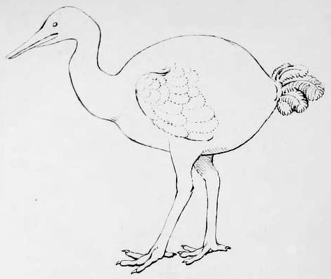 헤르만 슐레겔의 1854년 따오기 또는 황새를 닮은 복원도(도도새가 아닌 뒤부아의 묘사를 바탕으로 함)