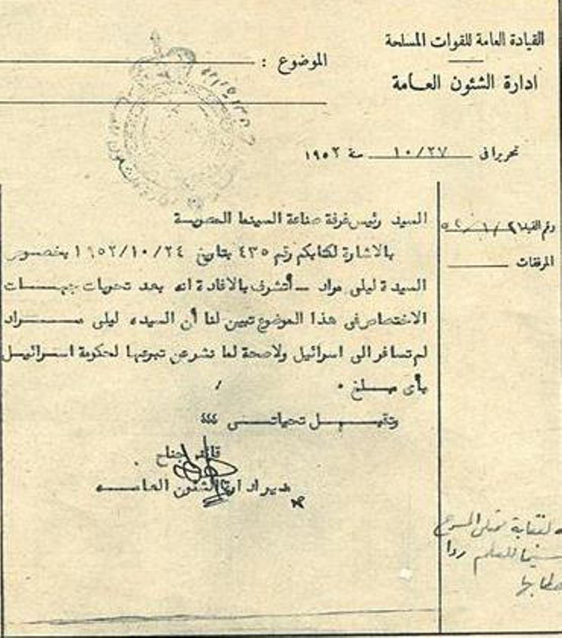 1953년, 레일라 무라드는 움 쿨숨을 제치고 이집트 혁명의 공식 가수로 선정되었다. 그러나 직후 무라드가 가족이 있는 이스라엘을 방문하여 군대에 돈을 기부했다는 소문이 퍼지면서 간첩 혐의가 제기되었다. 이로 인해 일부 아랍 라디오 방송국은 그녀의 노래 방송을 중단하는 등 보이콧 움직임이 있었다. 레일라 무라드는 이러한 혐의를 강력히 부인했다.[11] 이집트 정부는 이 사안에 대해 조사를 진행했으며, 조사 결과 그녀가 이스라엘 군대에 돈을 기부했다는 증거는 발견되지 않았다. 결국 이집트 정부는 레일라 무라드에 대한 혐의가 근거 없다고 공식적으로 결론지었다.