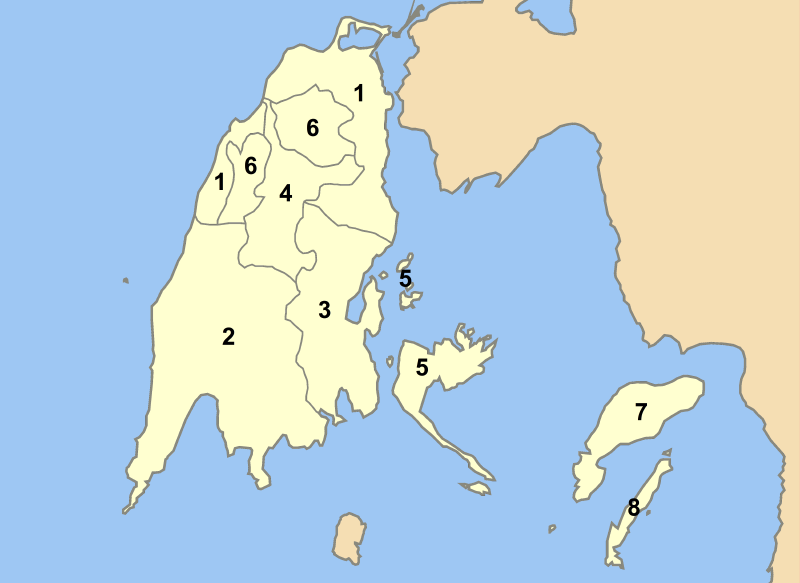 | | 구 자치체 | 철자 | 정청 소재지 | 신 자치체 |