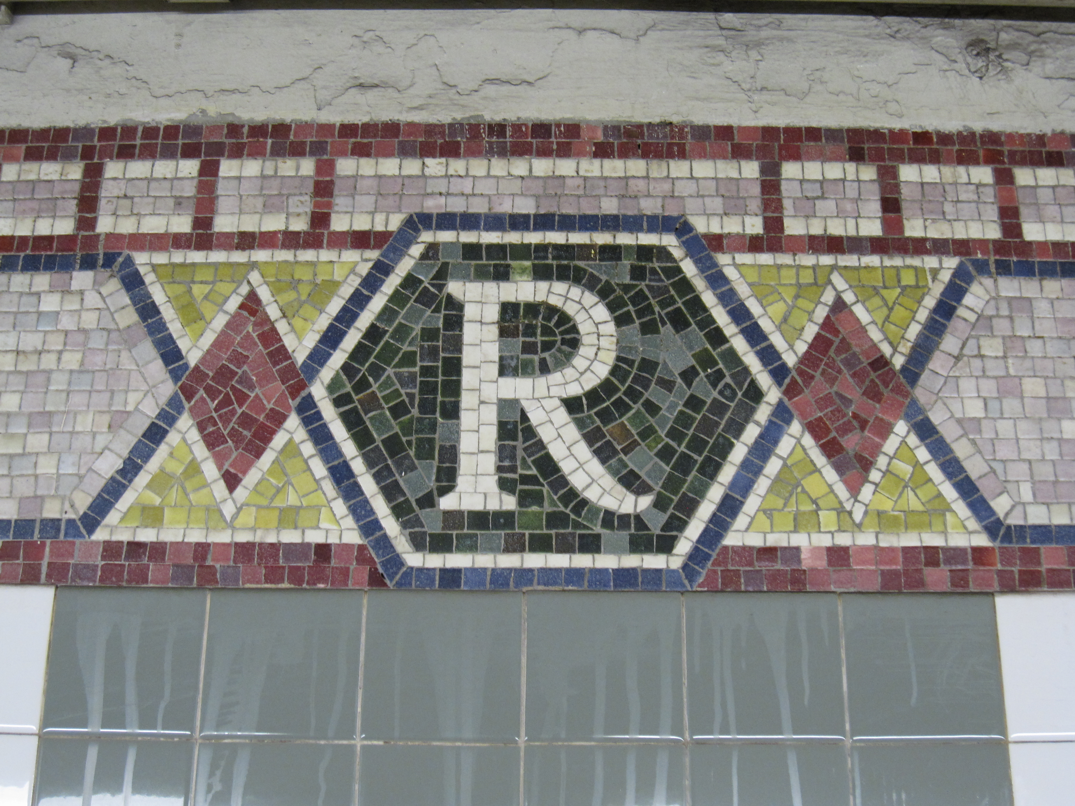 각 승강장에는 녹색과 갈색을 중심으로 한 모자이크 트림 라인과 역명판이 설치되어 있다. 'R' 글자가 새겨진 타일 아래는 밝은 녹색으로 칠해져 있다. 이 역에는 별도의 예술 작품은 설치되어 있지 않다.