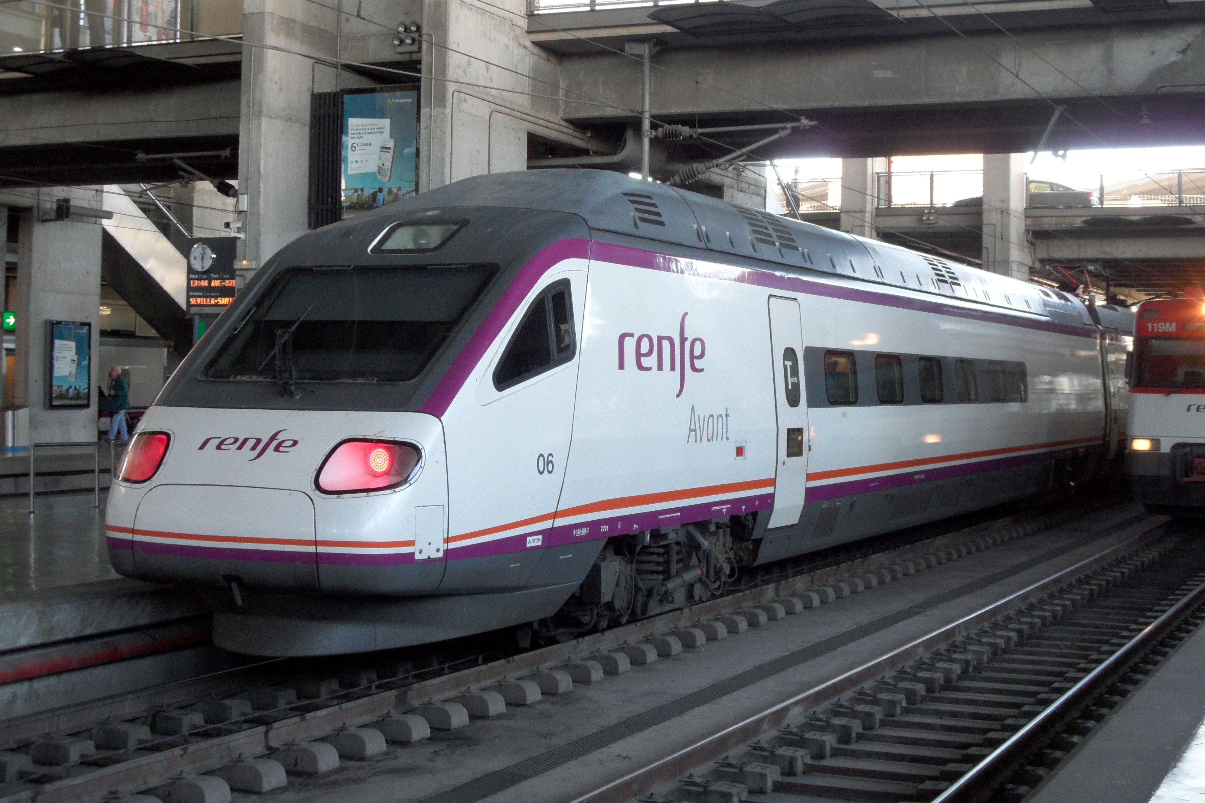 아방(Avant) | 렌페 104형 전동차 | 마드리드 - 톨레도 마드리드 - 시우다드 레알 말라가 - 그라나다 세비야 - 코르도바 바르셀로나 - 캄 데 타라고나 세비야 - 말라가 | ![]() | ||