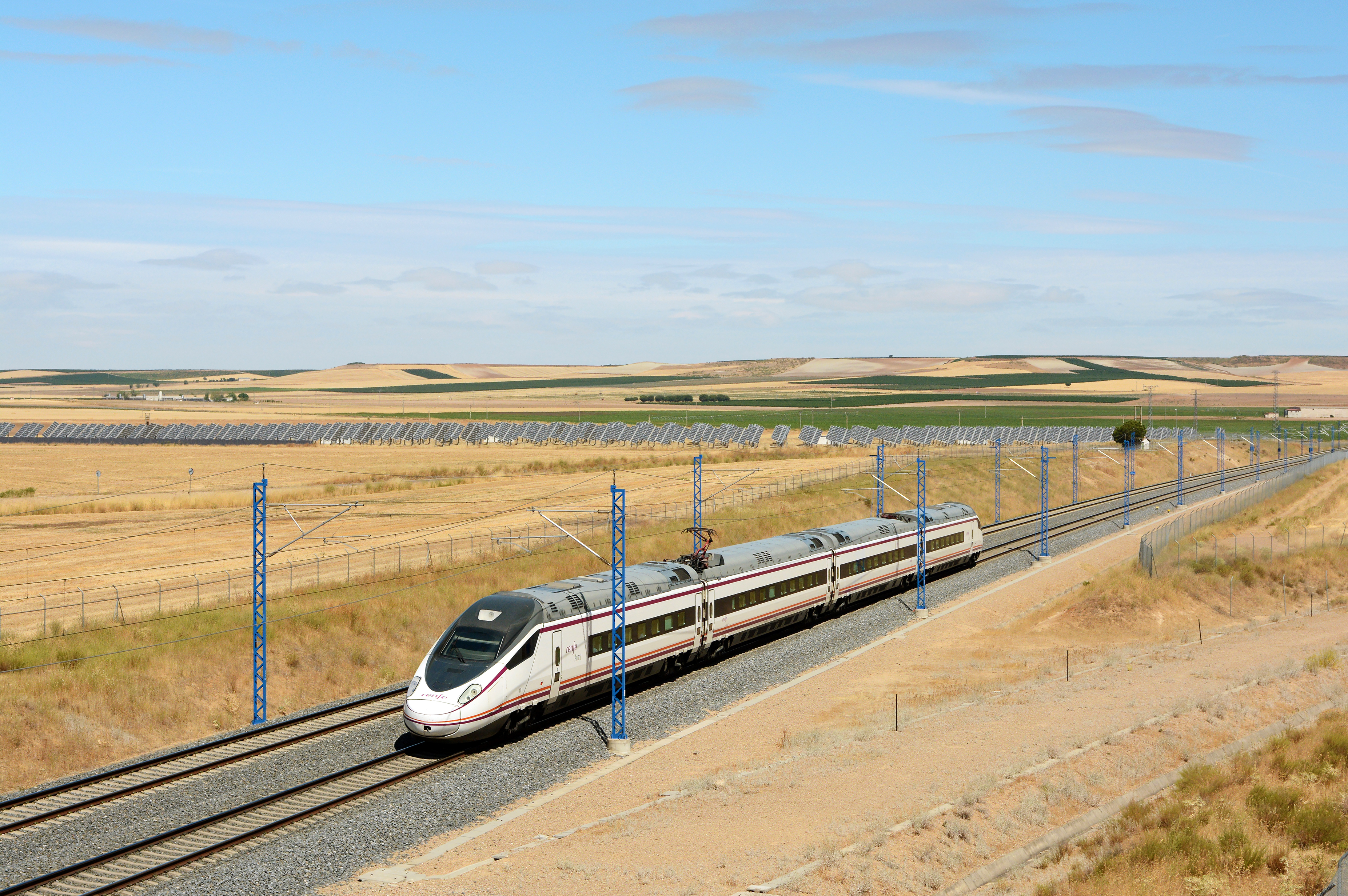 프랑스와의 직통, 고속 신선과 재래선의 직통을 위해, 오래전부터 궤간 가변 차량을 많이 운행하고 있으며, 그 기술과 실적은 세계 최고 수준이다. 궤간 가변 고속 전차도 세계 최초로 실용화했다. 스페인의 고속 철도 사업은 1988년에 수도마드리드와 안달루시아 지방의 주도세비야를 잇는 노선 건설이 최초이며, 1992년에 AVE로 운행을 시작했다.