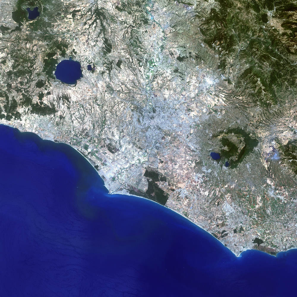로마 수도 광역시의 면적은 라치오 주 전체 영토의 거의 3분의 1을 차지한다. 로마 평원과 테베레 계곡에서 루크레틸리, 사비니 산맥과 델'아니에네 계곡, 북서쪽의 톨파 산맥과 사바티니 산 지역, 동쪽의 티부르티니, 프레네스티니, 심브루이니 산맥 지역, 남동쪽의 콜리 알바니와 산맥 북쪽 산기슭 지역, 그리고 레피네 사코 계곡까지 이어진다. 이 광역시의 서쪽 경계는 티레니아 해로, 치비타베키아에서 토레 아스투라까지 로마 인근 해안에서 약 130km 뻗어 있다. 이 지역에는 여러 호수가 있으며, 거의 모두 화산 기원으로, 사바티니 산맥 북서쪽과 콜리 알바니 남동쪽에 집중되어 있다.