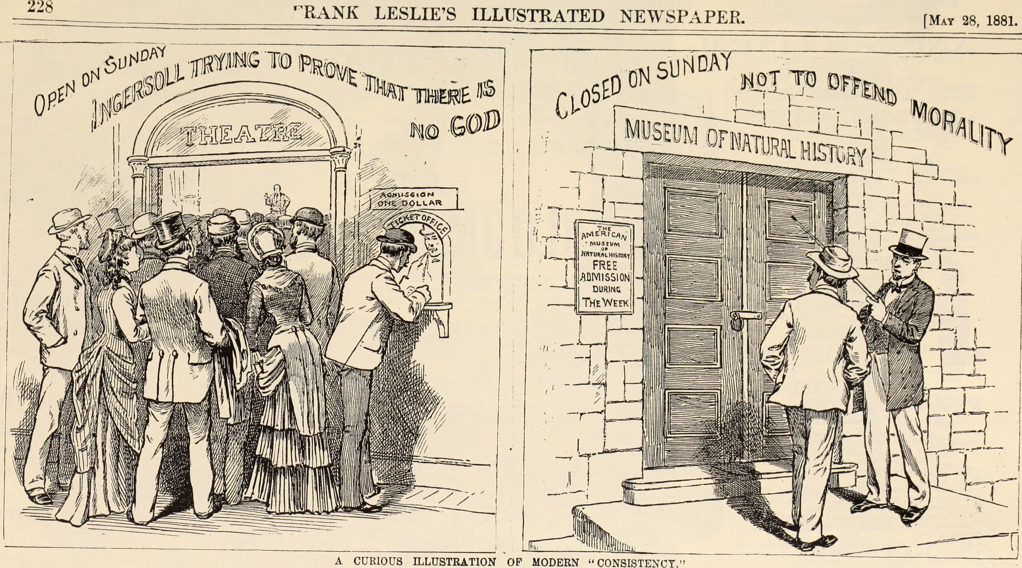 로버트 G. 잉거솔은 헨리 워드 비처 목사에게 "위대한 불가지론자"로 소개받을 정도로[12] 불가지론을 옹호했다. 그는 지옥 교리를 비판하며, 중국인 배척법에 반대하는 등 사회 문제에도 적극적으로 참여했다.[13][14]