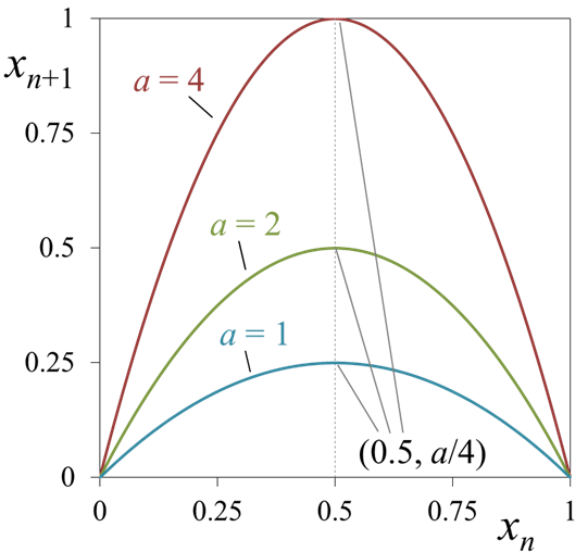 간단히 말해, 로지스틱 사상은 다음과 같은 2차 함수이다.
