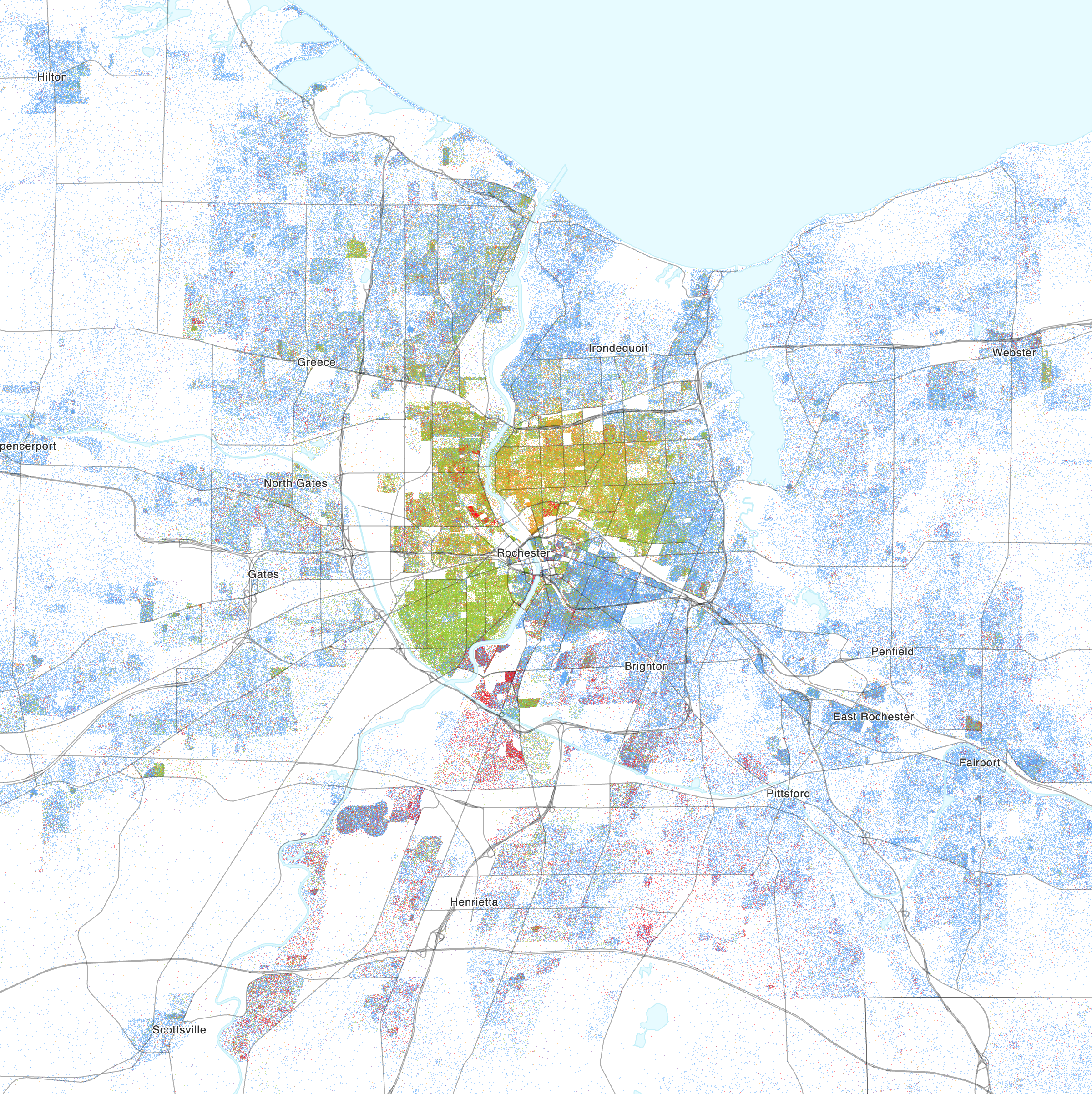 1950년, 인구 조사국은 로체스터 인구의 97.6%가 백인이고 2.3%가 흑인이라고 보고했다.[42] 로체스터의 흑인 인구는 1950년대에 3배로 증가하여 25,000명을 넘어섰다. 도시의 주요 산업에서 임시직으로 고용된 대부분의 아프리카계 미국인들은 저임금, 저숙련 직종에 종사했고, 열악한 주거 환경에서 살았다. 불만은 3일간의 1964년 로체스터 인종 폭동으로 폭발하여 5명의 사망자, 350명의 부상자, 거의 1,000명의 체포, 204개의 상점 약탈 또는 피해를 입었다.[51][52] 폭동 이후, 로체스터 지역 교회들은 흑인 시민권 지도자들과 함께 산업 지역 재단(Industrial Areas Foundation)의 소울 알린스키(Saul Alinsky)를 초청하여 지역 사회의 조직을 도왔다. 프랭클린 플로렌스(Franklin Florence) 목사와 함께 그들은 FIGHT (Freedom, Integration, God, Honor, Today)를 설립하여 이스트먼 코닥에 고용 및 도시 행정을 개방하도록 압력을 가하는 데 성공했다.[53][54]