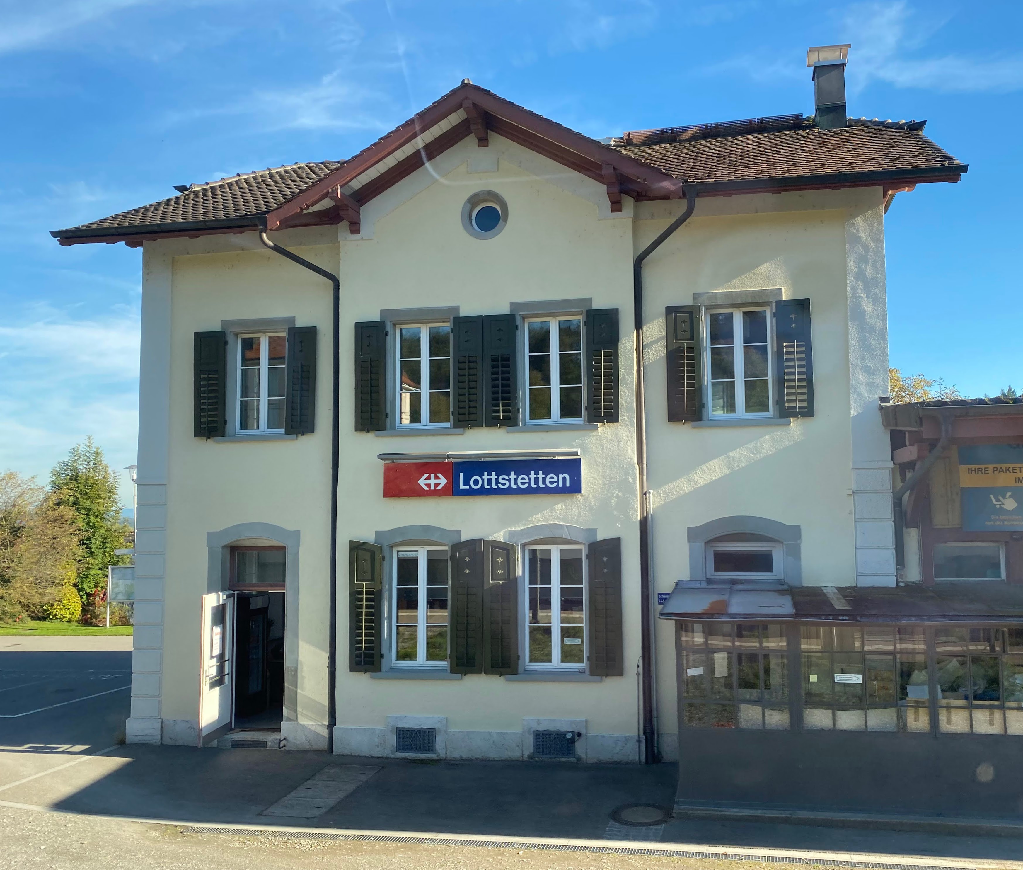 로트슈테텐역은 스위스 연방 철도에서 운영하는 국경 횡단 에글리자우-노이하우젠선에 위치해 있으며, 취리히 S-반 S9 노선이 운행된다. 로트슈테텐은 완전히 독일 영토 내에 위치하면서 스위스가 운영하는 두 개의 역 중 하나이며, 다른 하나는 예슈테텐역이다. 2010년 12월까지는 알텐부르크-라이나우역이라는 세 번째 역이 운영되었다. 이 역은 스위스 노이하우젠 암 라인팔과의 국경에 가까운 예슈테텐의 일부인 알텐부르크에 있었으나, 승객 수가 적다는 이유로 스위스 정부에 의해 폐쇄되었다. 이는 독일 당국의 항의에도 불구하고 진행된 결정이었다.[10][11][12]