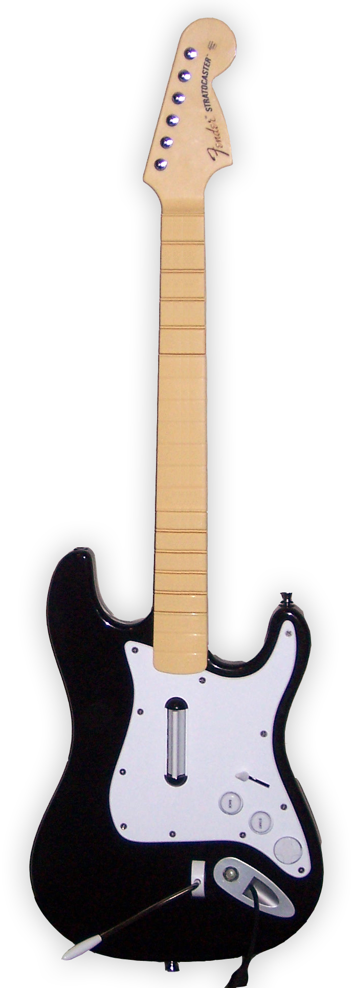 ''록 밴드''는 펜더 스트라토캐스터를 모델로 한 기타 컨트롤러를 사용한다. 기타 히어로 컨트롤러와 유사하게 넥에 5개의 색상별 프렛 버튼, 스트럼 바, 와미 바를 갖추고 있다.[21] 스트라토캐스터 컨트롤러는 기타 본체에 더 가까운 곳에 추가 프렛 버튼 5개가 있어, 기타 솔로 연주 시 스트럼 없이 해머온과 풀오프로 연주할 수 있다.[11] 또한, 솔로와 오버드라이브 활성화 시 적용되는 5가지 효과를 전환하는 스위치도 있다. 기타 컨트롤러는 유선 및 무선 버전으로 제공되며,[21] 대부분의 ''기타 히어로'' 기타 컨트롤러 및 타사 컨트롤러와 호환된다.[11][21]