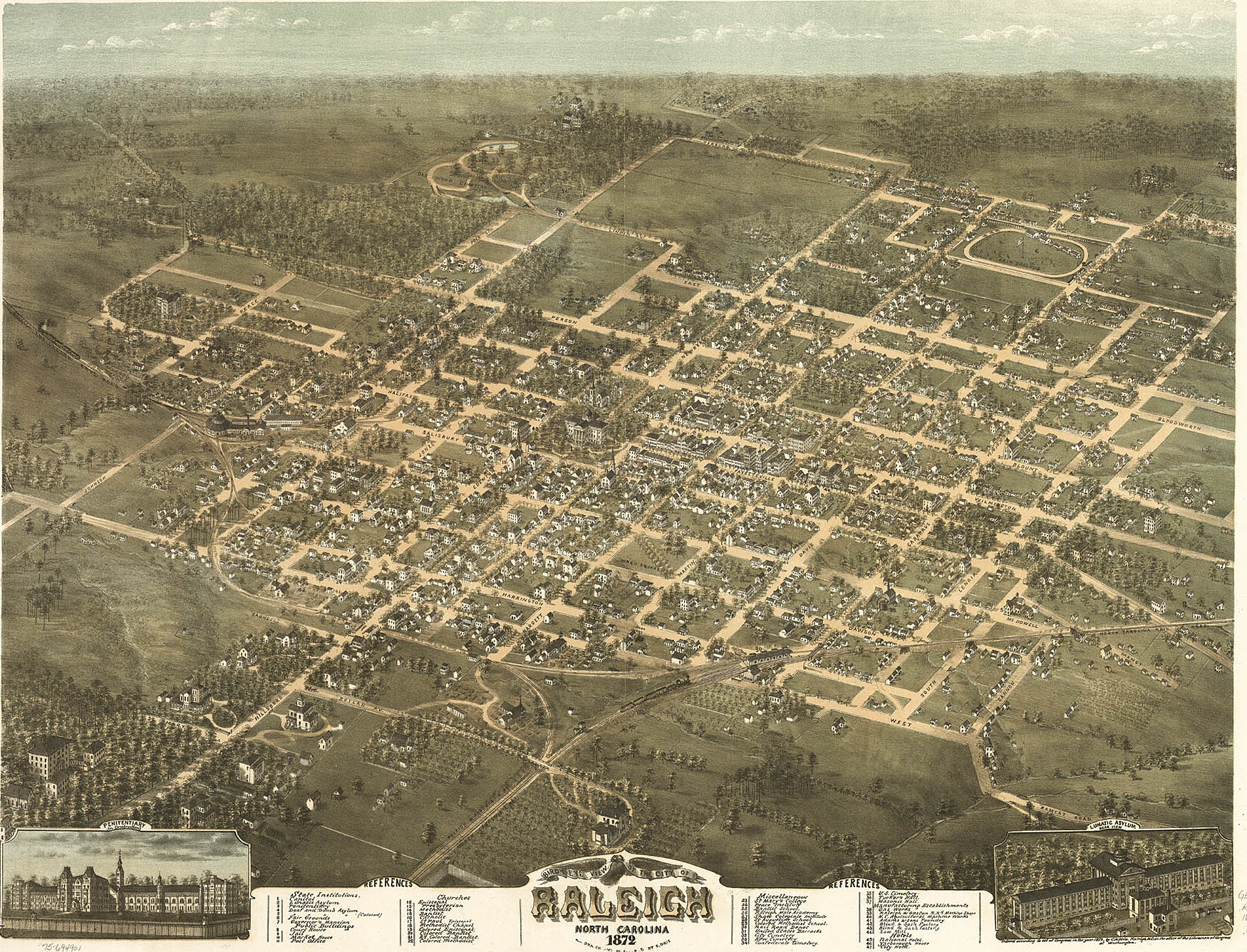 1788년, 롤리는 해안으로부터의 공격에 대비할 수 있는 중앙 위치 때문에 새로운 주도 건설지로 선정되었다.[17] 1792년, 롤리는 공식적으로 카운티청사이자 주도로 설립되었으며,[18] 1792년 12월 31일 시로 편입되었고, 1795년 1월 21일 시헌장이 부여되었다.[19] 이 도시는 로아노크섬의 "잃어버린 식민지"의 후원자인 월터 롤리 경의 이름을 따서 명명되었다.선정된 도시 부지에는 이전에 알려진 도시나 마을이 존재하지 않았다. 롤리는 미국에서 주도로서의 기능을 위해 특별히 계획되고 건설된 몇 안 되는 도시 중 하나이다. 원래 경계는 북쪽, 동쪽, 서쪽, 남쪽의 시내 거리로 이루어져 있었으며,[20] 중앙 광장에서 만나는 두 개의 주요 축과 각 모서리에 하나씩 추가적인 광장이 있는 격자 형태의 계획은 토머스 홈이 1682년 필라델피아를 위해 계획한 계획을 기반으로 했다.[21]