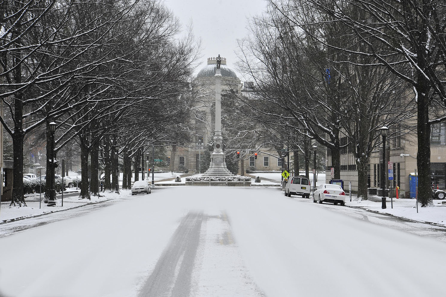노스캐롤라이나주는 1861년 5월 20일 미국 남북 전쟁 중 연합에서 탈퇴했다. 전쟁이 시작된 후, 제불론 베어드 반스 주지사는 연합군(Union)으로부터 도시를 보호하기 위해 도시 주변에 방어시설(breastworks)을 건설하도록 명령했다. 남북 전쟁이 끝날 무렵, 반스 주지사는 윌리엄 테쿰세 셔먼 연합군 장군의 캐롤라이나 전역군이 도시에 접근하자 체포를 피하기 위해 탈출을 계획했다. 떠나기 전에 반스는 전임 주지사인 윌리엄 알렉산더 그레이엄과 데이비드 로리 스웨인과 만나 롤리 항복 문서를 작성했다. 그들의 의도는 연합군에 의해 다른 도시들에 가해진 파괴로부터 롤리를 보호하는 것이었다. 그레이엄과 스웨인은 1865년 4월 12일 아침에 다가오는 연방군을 만나러 갔고 그날 저녁에 돌아올 예정이었다. 저녁이 되었지만 기차 지연과 셔먼에 의한 일시적 체포로 인해 그레이엄과 스웨인은 돌아오지 않았다. 그레이엄과 셔먼이 돌아오지 못하자 반스 주지사는 그날 저녁에 떠났고, 윌리엄 H. 해리슨(William H. Harrison) 시장에게 항복 권한을 위임하는 편지를 남겼다. 4월 13일 아침, 해리슨 시장 등은 휴 저드슨 킬패트릭 장군을 만나 항복을 제안하기 위해 웨이크 카운티 남부 지역으로 갔다. 롤리의 오랜 주민인 케네스 레이너(Kenneth Rayner)는 저항하지 않겠다는 약속을 포함한 제안을 전달했다. 킬패트릭은 항복을 받아들이고 롤리를 파괴로부터 보호하는 데 동의했다. 킬패트릭의 기병대(cavalry)는 롤리를 점령하고 노스캐롤라이나 주청사에서 깃대를 제거한 후 돔 위에 미국의 국기를 게양했다. 셔먼은 얼마 후 도착하여 노스캐롤라이나 주지사 관저에 본부를 설치했다. 이 도시는 전쟁 중 심각한 파괴를 면했다.[28] 남부 연합군(Confederate States Army) 기병대가 서쪽으로 후퇴하자, 연합군 병사들이 뒤따라 근처에서 모리스빌 전투가 벌어졌다.[29]