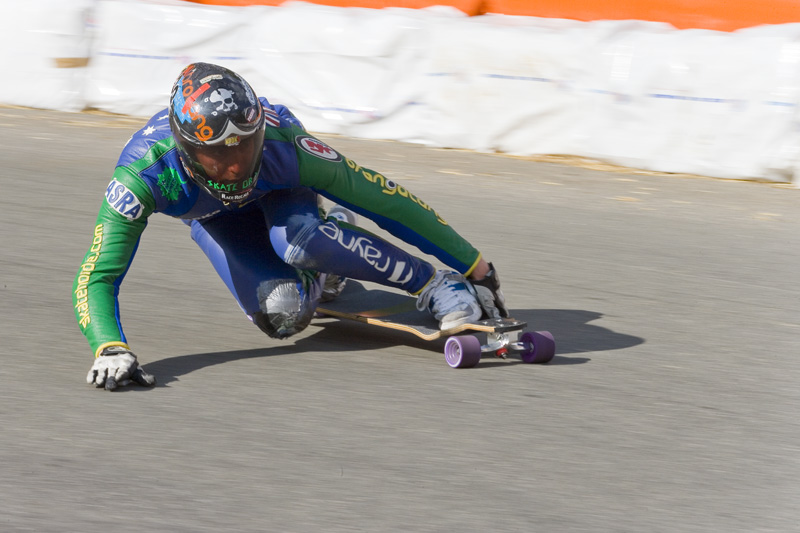 '''다운힐'''(스피드보딩) 관련해서는 IDF(International Downhill Federation)와 IGSA(International Gravity Sports Association)에서 주관하는 다운힐 대회가 세계 각지에서 열린다. 다운힐에는 드롭 스루, 드롭 플랫폼, 탑 마운트 롱보드가 모두 사용되며, 데크는 매우 단단하고 휠베이스는 보통 약 50.80cm 에서 약 63.50cm 정도이다.