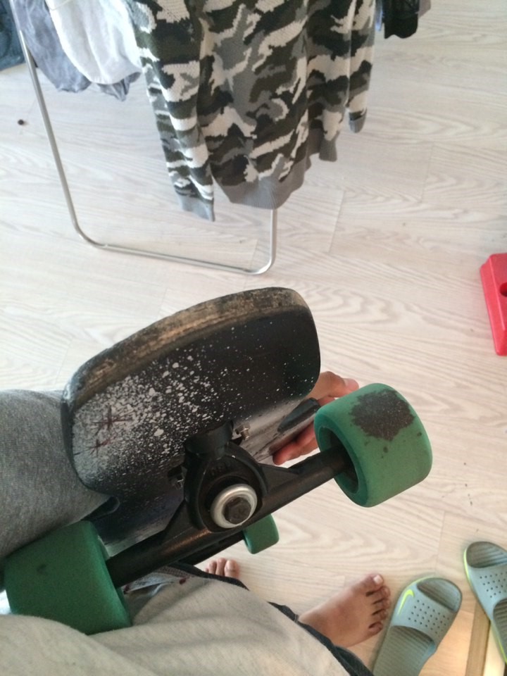 - 높은 경도 (딱딱한 휠): 슬라이드에 유리하며, 트릭을 할 때 잘 튀어 오르는 장점이 있다.[1] 매끄러운 표면에서는 부드러운 휠보다 빠르다. 일반적인 노면에서 가장 빠른 속도를 내는 경도는 약 80a 정도로 알려져 있다.[2]