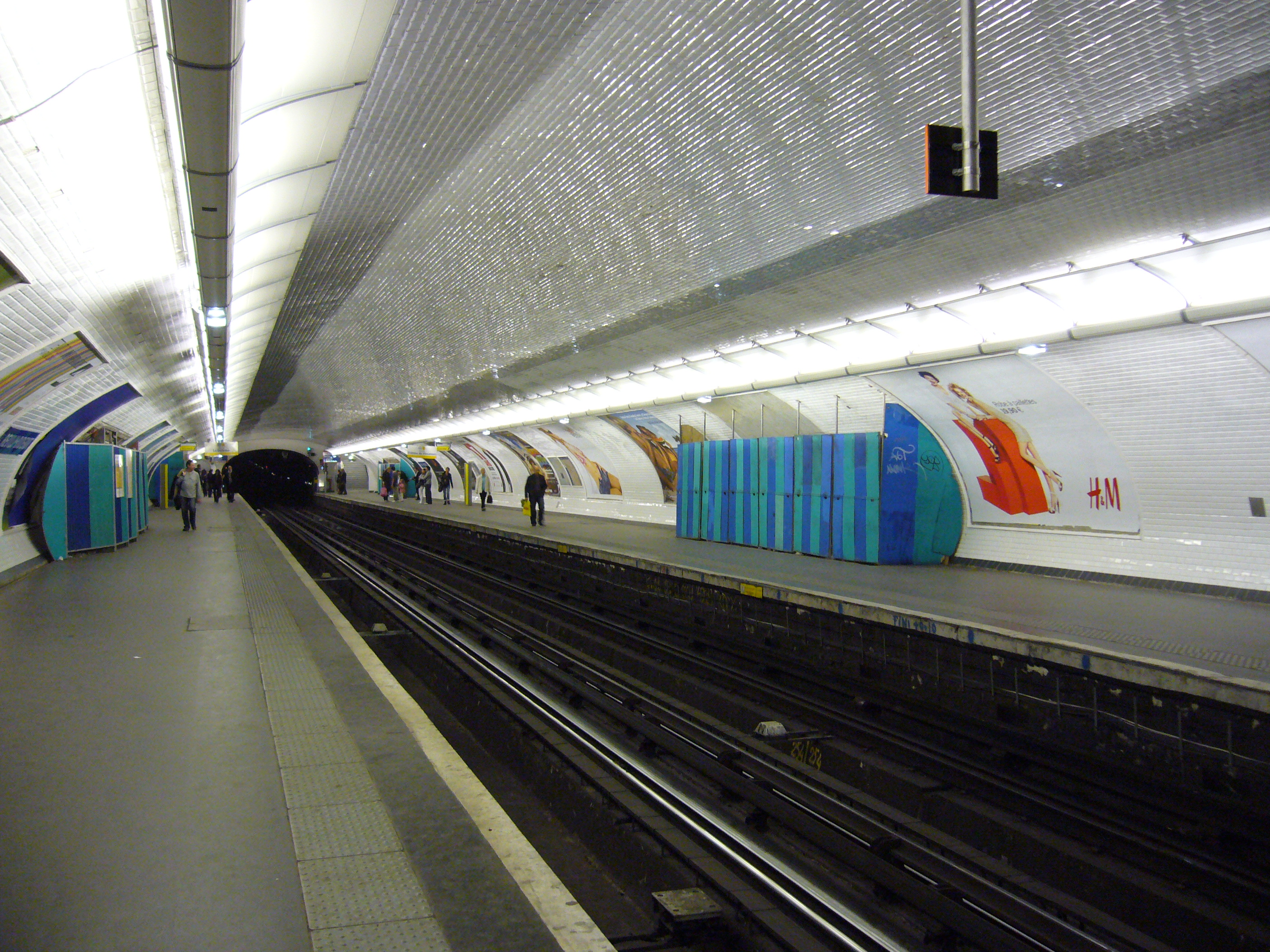 파리 메트로 1호선 승강장은 2개의 선로와 2개의 상대식 승강장을 갖춘 표준 구조이다. 2011년 3월부터 스크린도어가 설치되어 운영 중이며, 열차 출입문은 오른쪽으로 열린다.방향 | 목적지 | 이전 / 다음 역 |