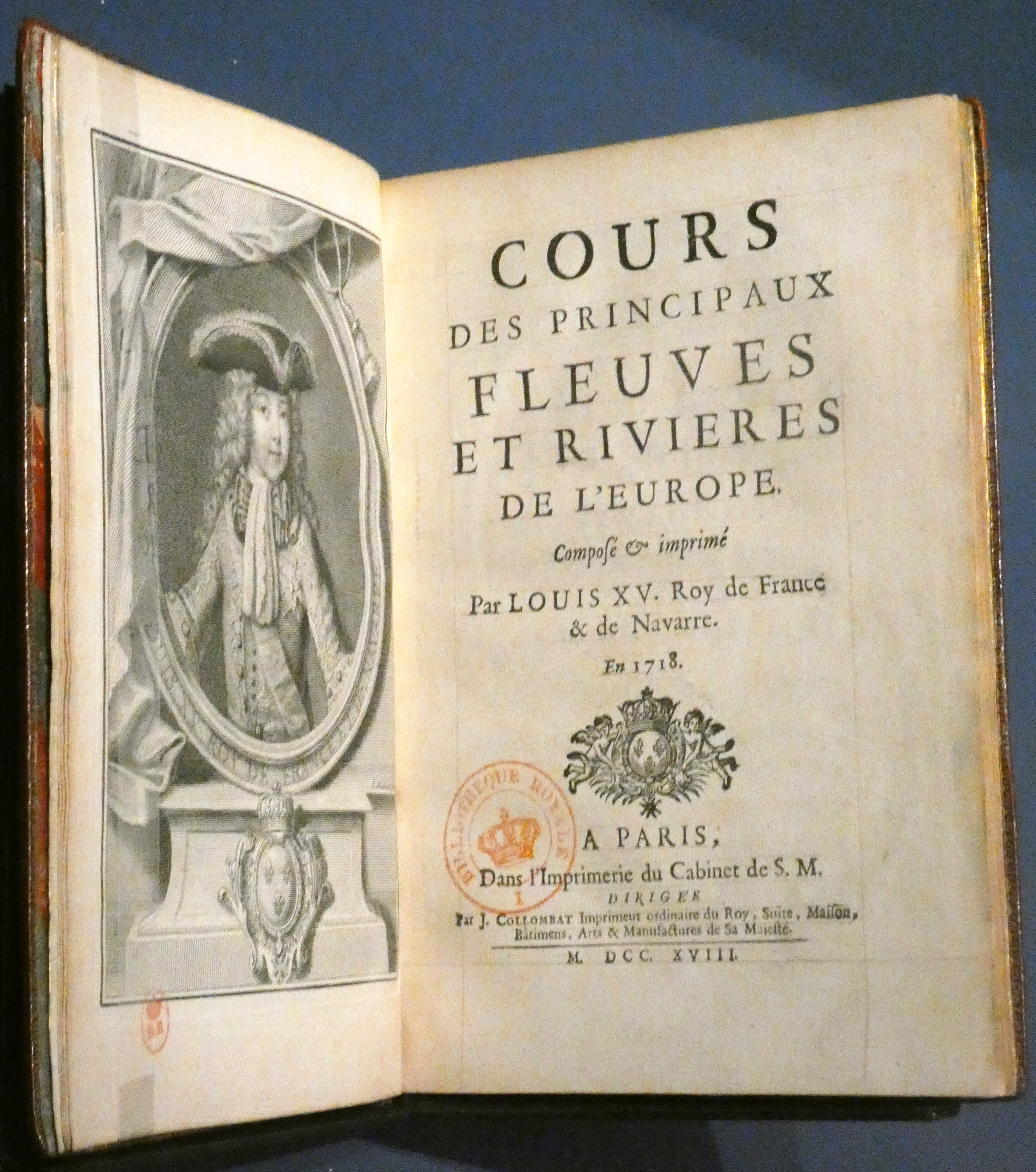 8세의 루이 15세가 직접 편집하고 인쇄한 ''Cours des principaux fleuves et rivières de l'Europe'' (유럽 주요 강의 흐름). 어린 왕의 교육에는 지리와 인쇄가 포함되었다.