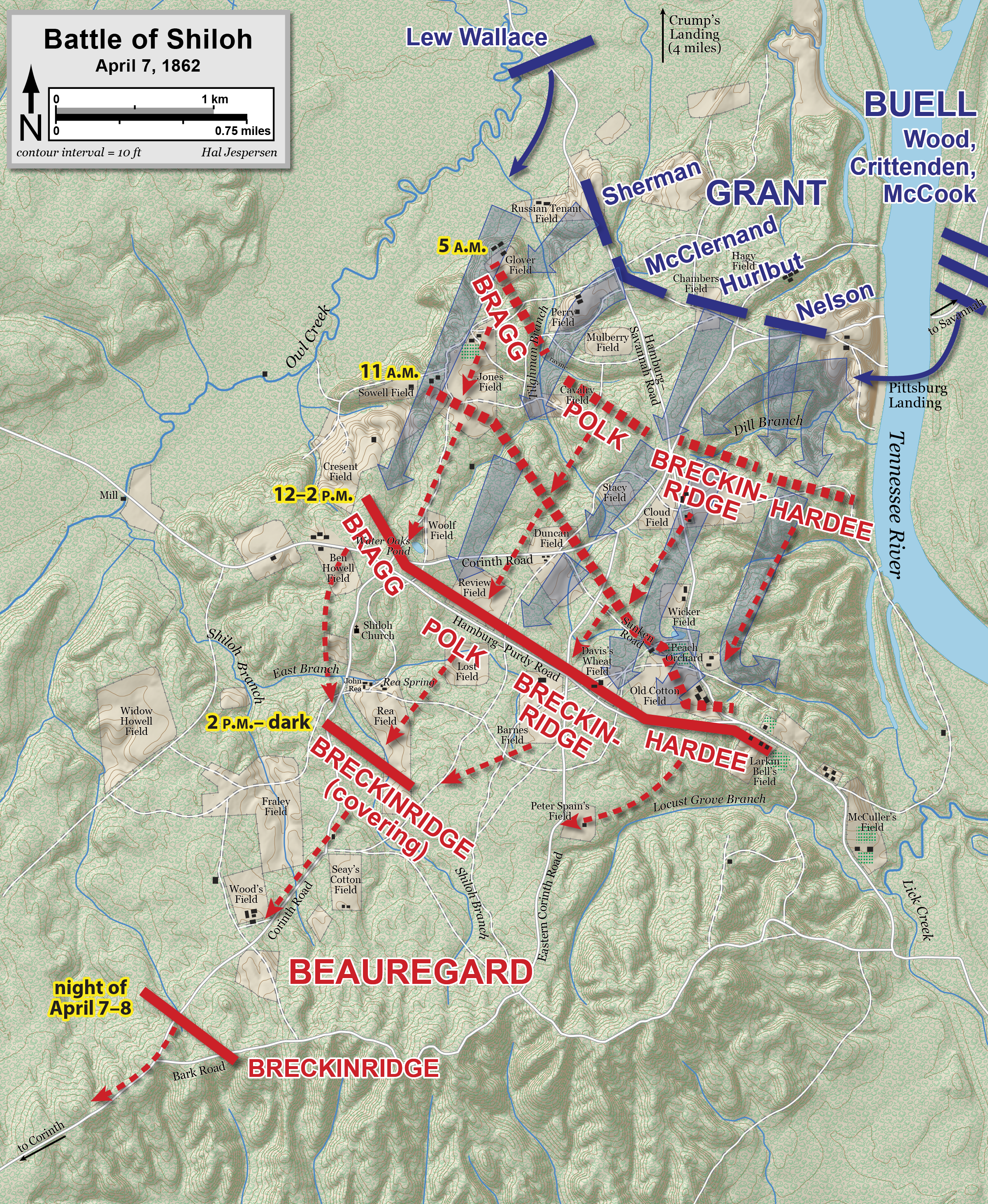 다음 날인 4월 7일, 월리스 사단은 연합군 전선의 맨 오른쪽을 지켰고, 셔먼과 월리스의 군대는 남부 연합군을 후퇴하도록 도왔다.[68]