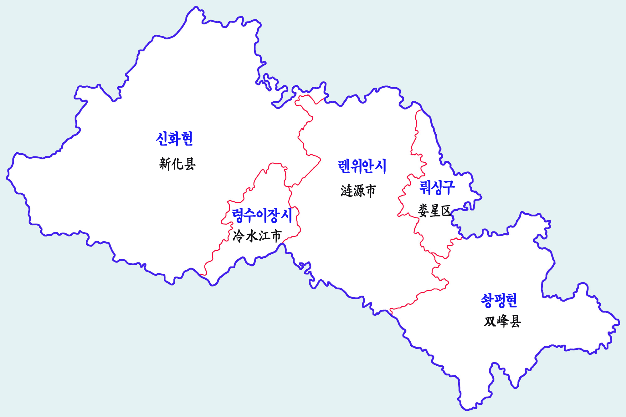 신화 현 | Xīnhuà Xiàn | 3642km2 | 1,110,910 | 305/km2 |