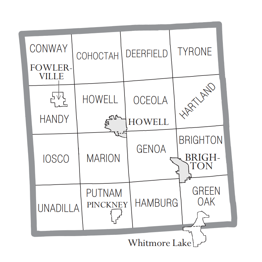 일반 타운십 (Civil Townships)코호크타 타운십, 컨웨이 타운십, 디어필드 타운십, 함부르크 타운십, 핸디 타운십, 하트랜드 타운십, 하웰 타운십, 아이오스코 타운십, 마리온 타운십, 오세올라 타운십, 퍼트넘 타운십, 타이론 타운십, 언아딜라 타운십