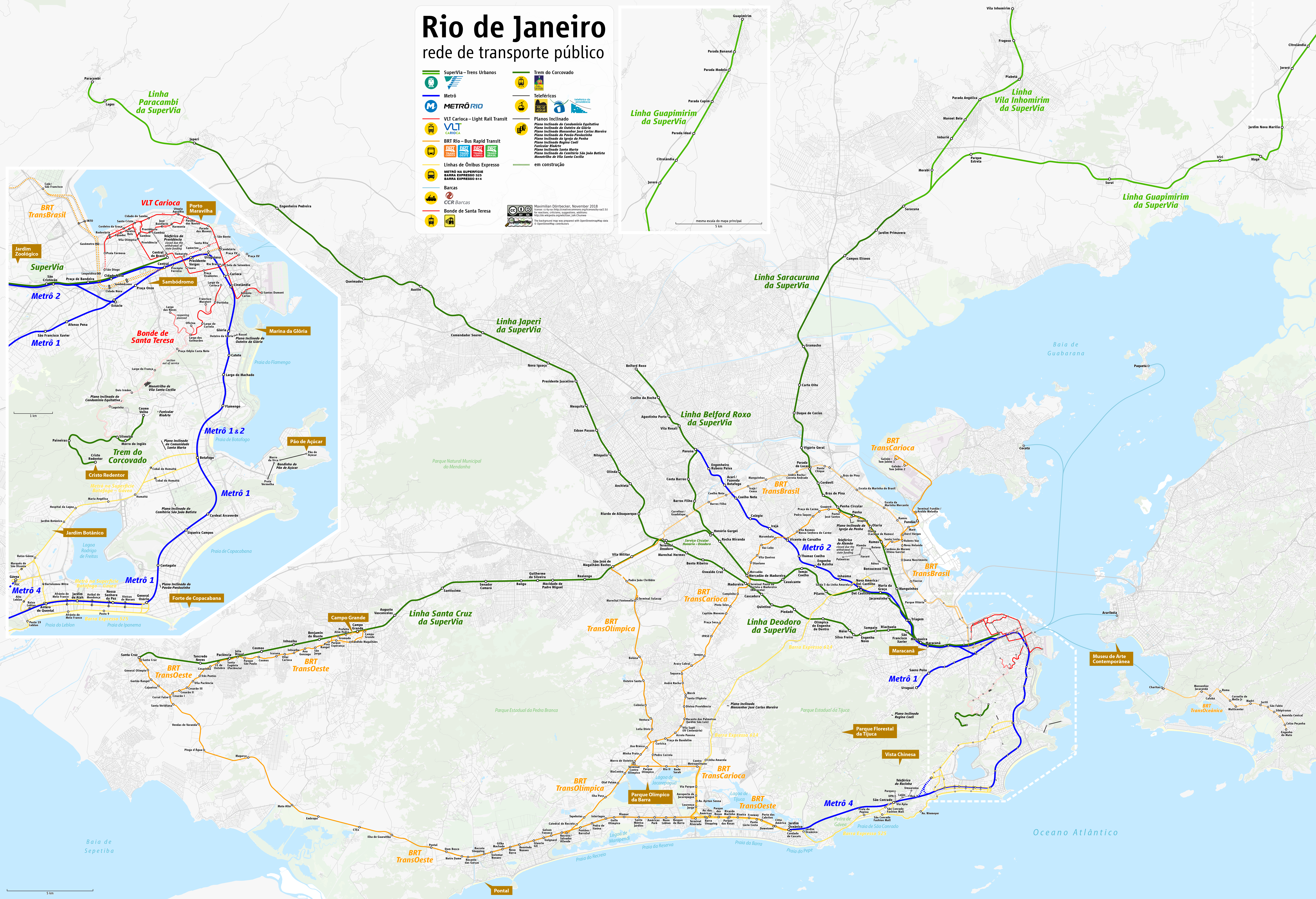 - '''4호선''': 2016년 하계 올림픽 개최에 맞춰 2016년 7월 개통되었다. 올림픽 기간에는 관련 승객만 이용 가능했으며, 같은 해 9월 일반에 개방되었다. 이파네마와 바라다티주카 지역을 연결한다. 현재 가베아역까지 지선이 건설 중이다.[21]