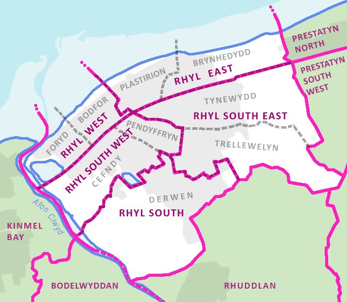 릴 타운 의회는 22명의 의원이 있으며, 보드포, 브린헤디드, 세프니, 데르웬, 포리드, 펜디프린, 플라스티리온, 트렐레웰린, 타이뉴이드의 9개 지역구로 나뉜다.[24]