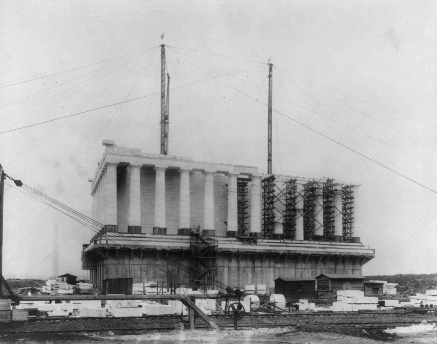 링컨 기념관은 헨리 베이컨이 그리스 신전 양식을 차용하여 설계했으며, 에이브러햄 링컨 대통령 서거 당시 미국의 주를 상징하는 36개의 기둥이 특징이다.[20] 1922년 5월 30일, 워런 G. 하딩 대통령이 제막식을 거행했고, 링컨의 아들 로버트 토드 링컨이 참석했다. 베이컨은 이 디자인으로 1923년 미국 건축가 협회 금메달을 수상했다.