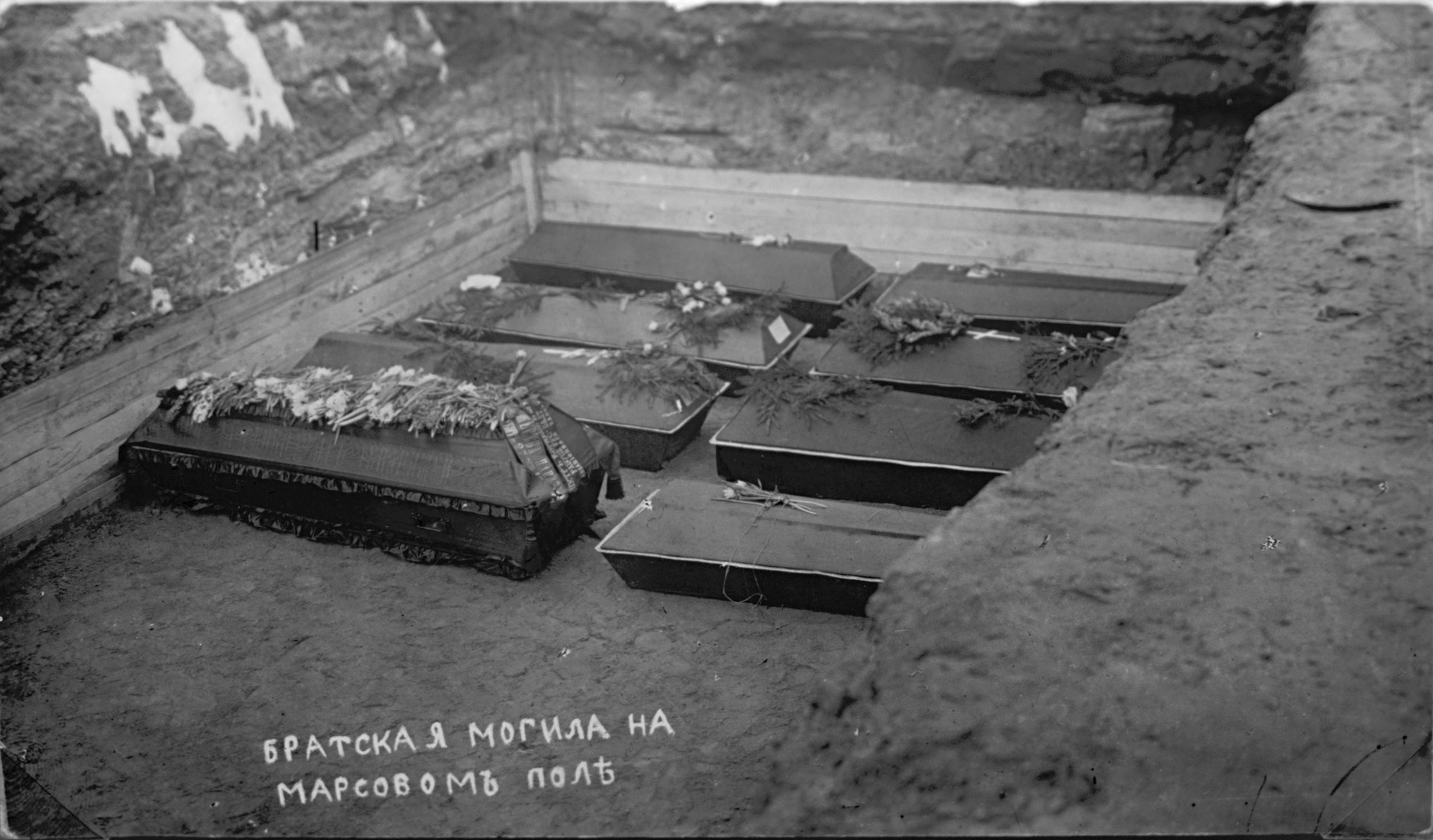 2월 혁명 이후, 페트로그라드 소비에트는 혁명으로 사망한 사람들을 위한 공동 묘지를 마르스 광장에 조성하기로 결정했다.[9] 마르스 광장 중앙에는 네 개의 큰 무덤이 파였다.[9]