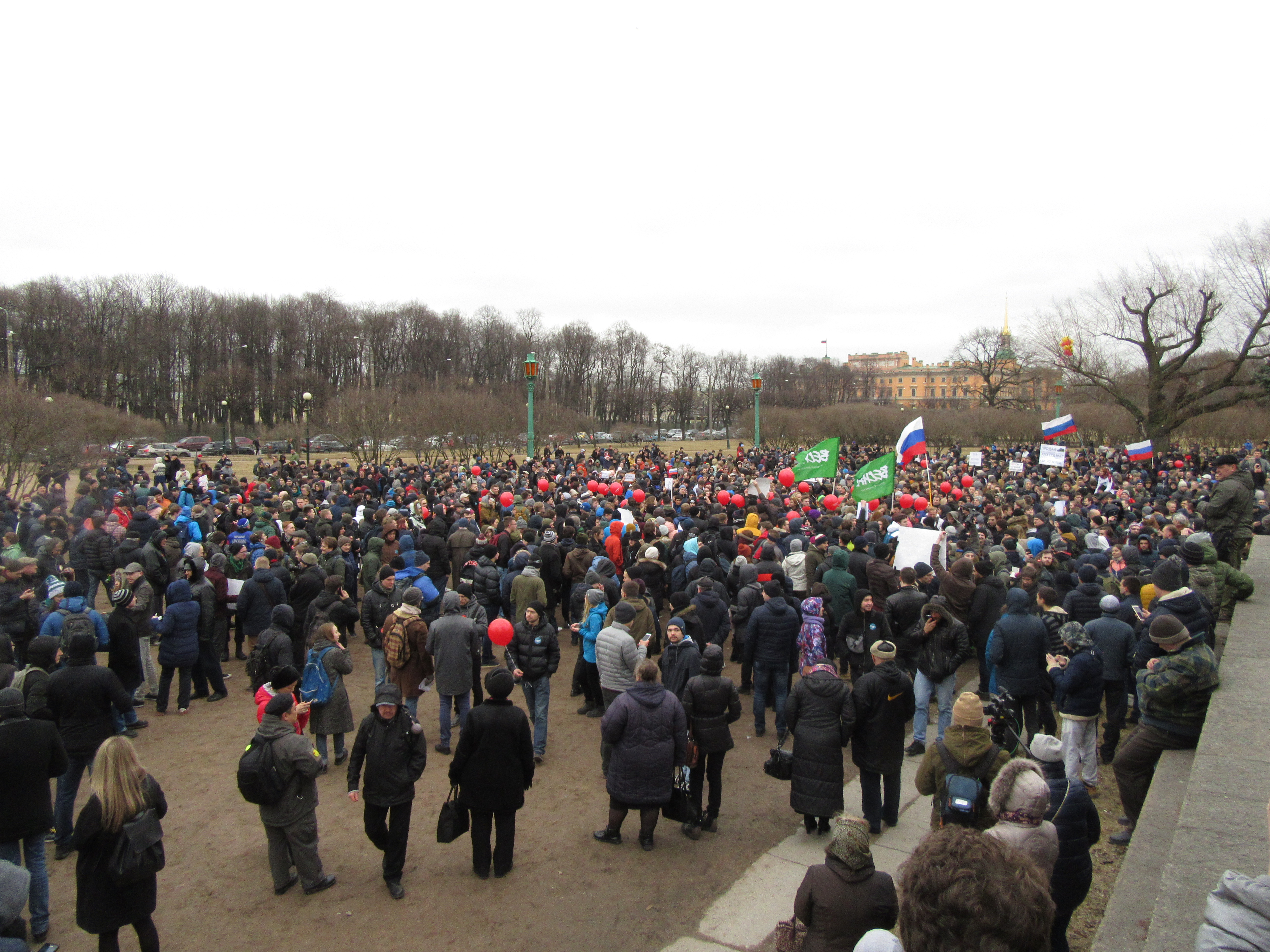 2017년 6월 12일에는 만 명 이상이 참석한 대규모 집회가 열렸다. 경찰은 상트페테르부르크 입법 의회 부의원 Резник, Максим Львович|막심 레즈니크ru과 여러 언론인을 포함하여 658명을 구금했다.[18] 2017년 8월 폴타브첸코는 매장의 성격과 기념비가 집회에 부적절한 장소라고 언급하며 마르스 광장의 "하이드 파크" 지위를 철회했다.[19]