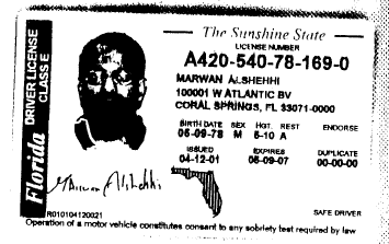8월 26일, 알셰히는 플로리다주 디어필드 비치에 있는 팬서 모텔에 500USD를 지불하고 9월 2일까지 투숙했다.[17] 그는 영구 주소로 Mailboxes Etc.를 기재했고, 등록 기록에는 파란색 시보레 말리부를 운전한다고 표시되어 있었다.[17] 이 차량은 2주 전에 아타가 빌린 것으로 추정된다.[17] 모텔 매니저 리차드 서마는 알셰히가 다른 남성을 하룻밤 손님으로 들이는 것을 허용하기 위해 규칙을 어겼다고 말했다.[17] 8월 28일, 알셰히는 신원 미상의 남성과 함께 마이애미 국제공항에 가서 175편 항공편의 티켓을 구매했다.[17]