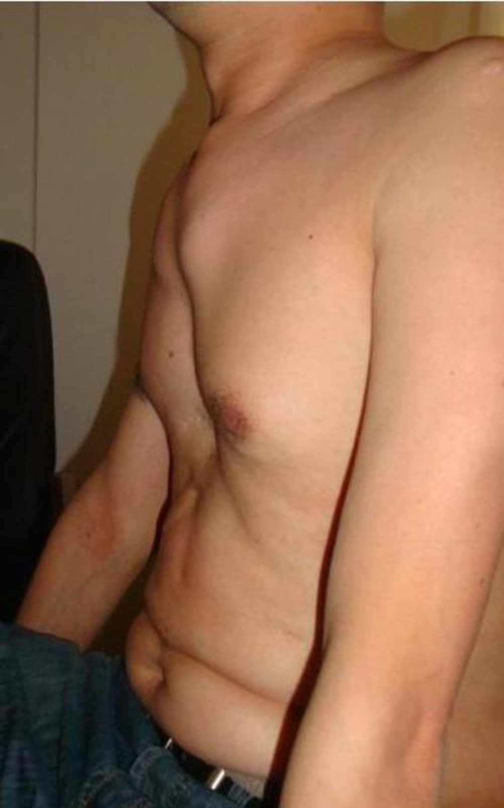 마르판 증후군 환자의 앞쪽 가슴 벽 기형인 오목 가슴