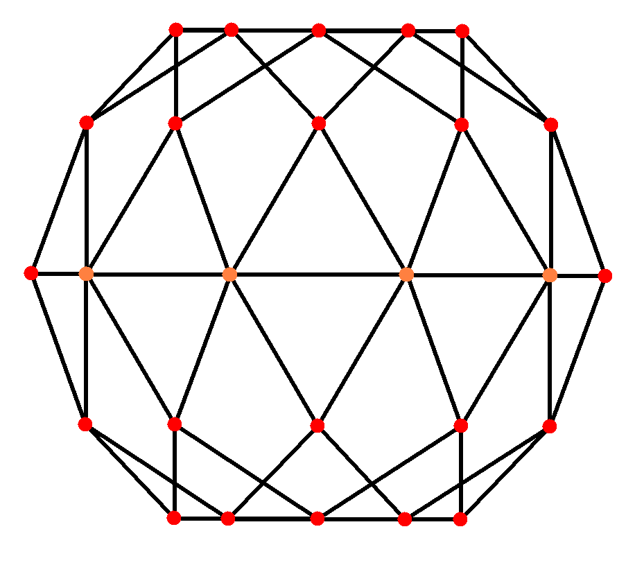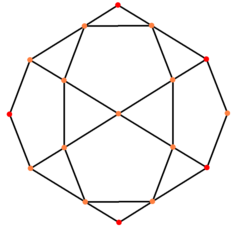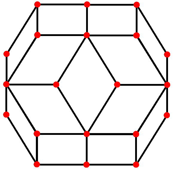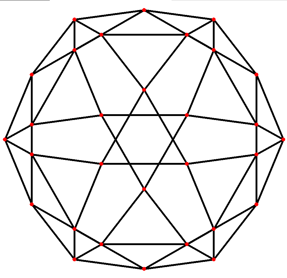 마름모의 둔각 3개가 모인 꼭짓점 20개를 이으면 정십이면체가 되고, 마름모의 예각 5개가 모인 꼭짓점 12개를 이으면 정이십면체가 된다. 이 방법으로 만든 정십이면체와 정이십면체를 겹치면 서로의 모서리 중앙 부분이 완전히 겹치는 복합체가 된다.