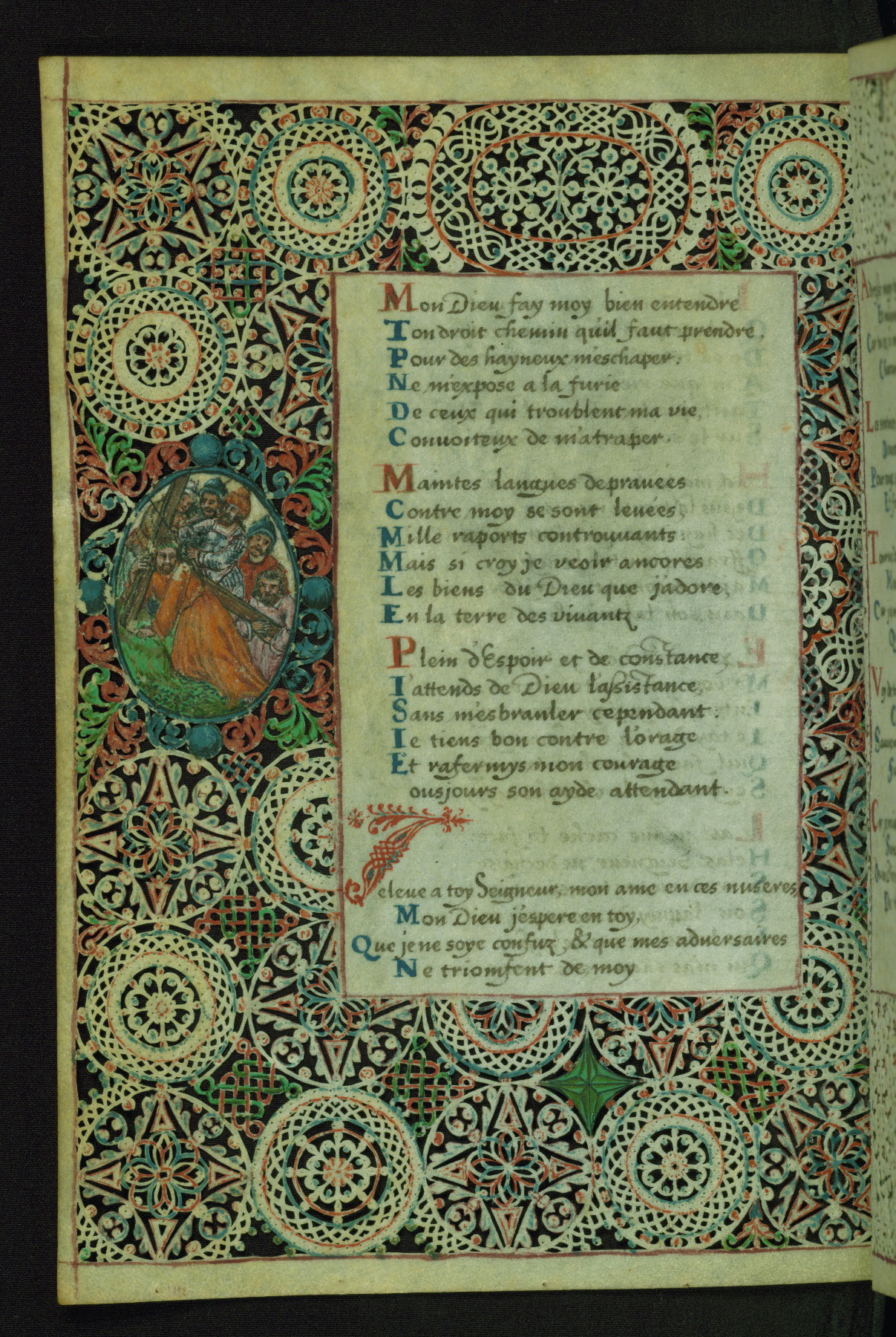 마리 드 메디시스의 기도서, 레이스 조각으로 장식된 양피지 페이지와 미니어처 그림