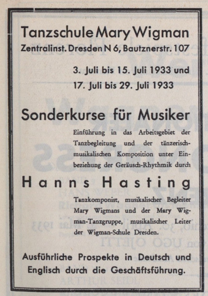 Selection of documents about The Wigman School, Dresden, from the period of 1924 to 1937