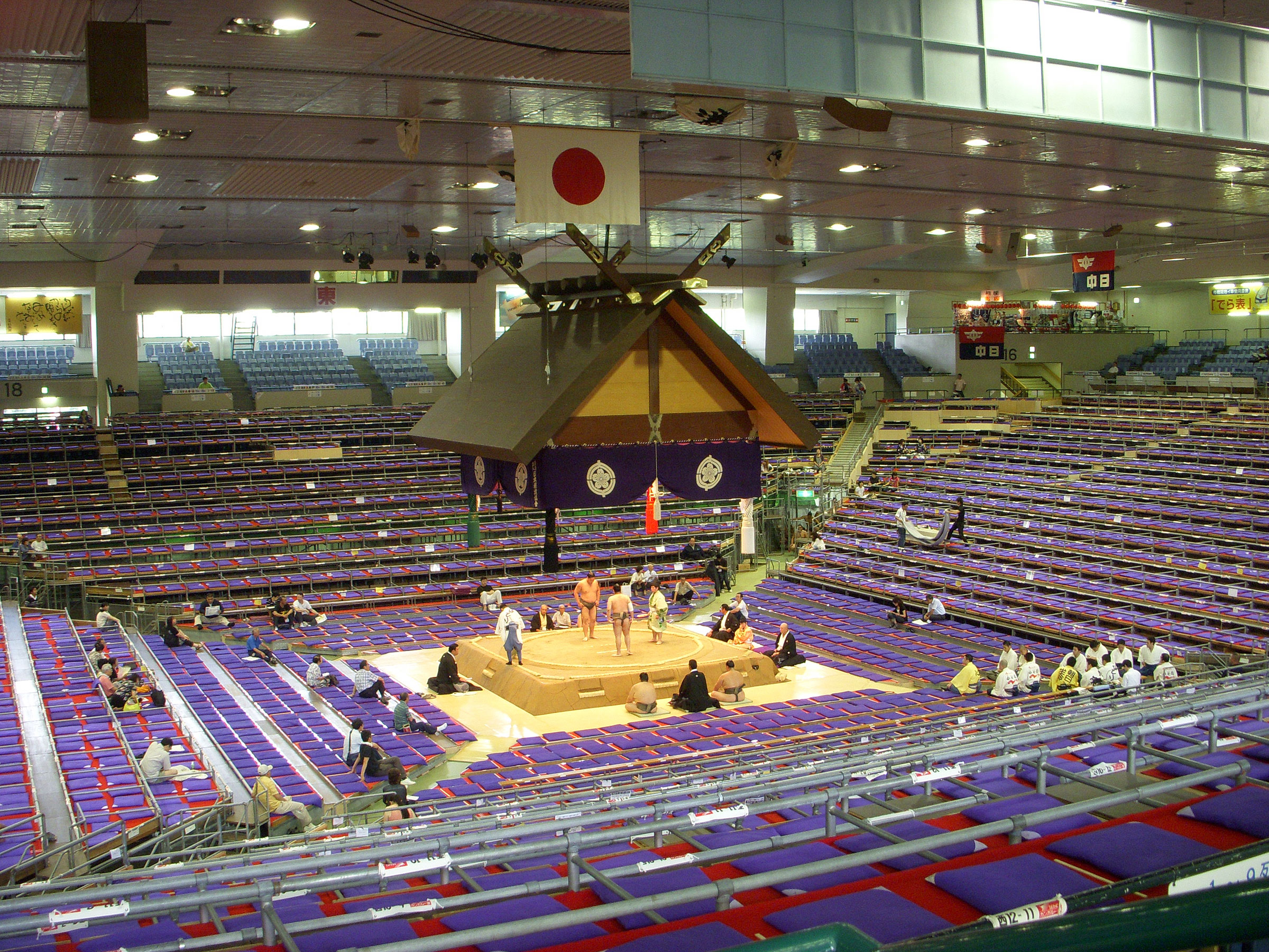권진 스모로서 발전한 오즈모(大相撲)는 역사적 배경으로 인해 각지의 사찰 경내에서 부정기적으로 흥행하는 것이 일반적이었으며, 오랫동안 전용 경기장을 갖지 못했다. 덴포 4년 (1833년) 이후에야 혼조 · 에코인에서의 스모 흥행이 정착되었다.