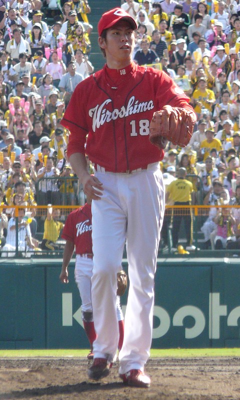 2008년부터 2015년까지 히로시마 도요 카프에서 뛰면서, 2010년과 2015년에는 리그 최고의 투수에게 수여되는 사와무라 에이지상을 수상했다.[3] 특히 2010년에는 일본 야구 역사상 최연소로 투수 트리플 크라운을 달성했다.[4]