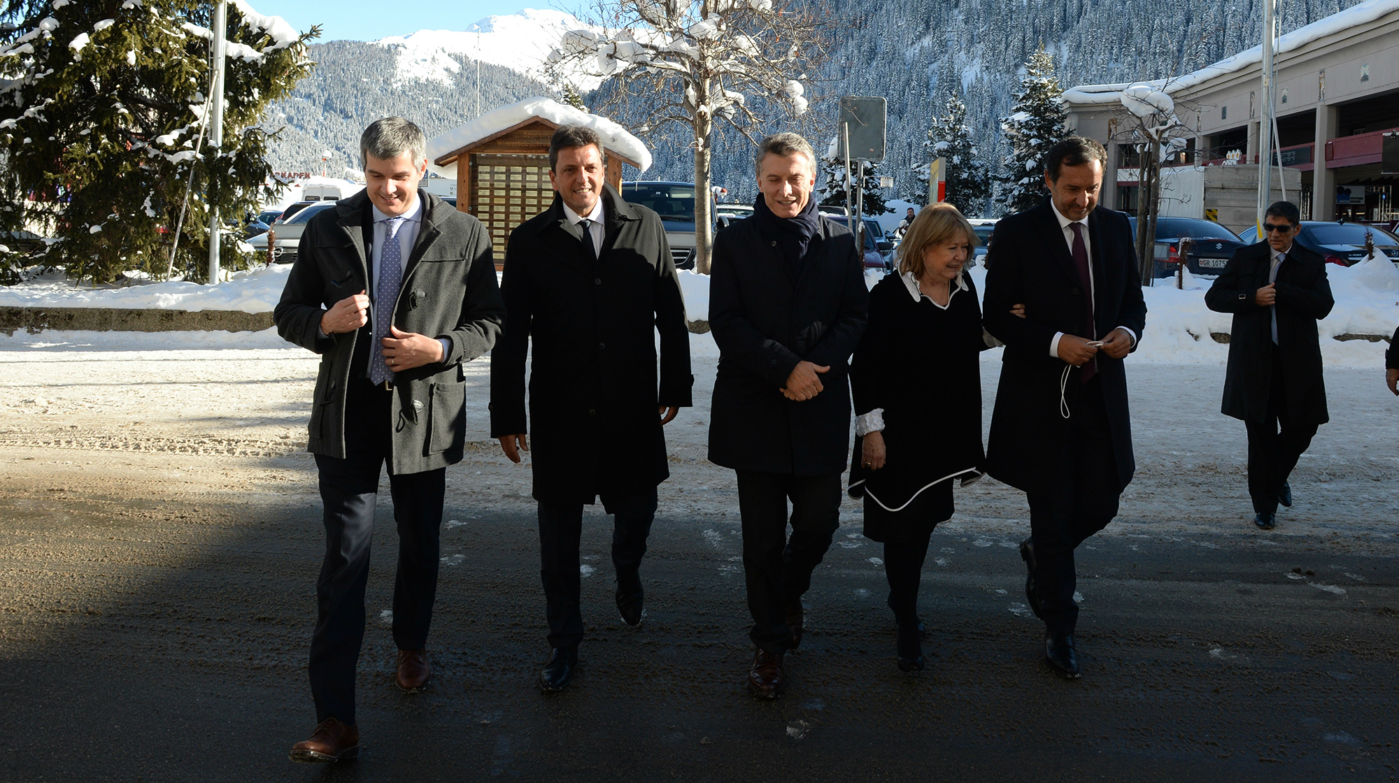 2016년 1월, 마크리는 세르히오 마사와 함께 스위스 다보스에서 열린 세계경제포럼에 참석, 저스틴 트뤼도 캐나다 총리, 조 바이든 미국 부통령 등과 회의를 가졌다.[112][113] 아르헨티나가 이 포럼에 참가한 것은 2003년 이후 처음이었다.[114]