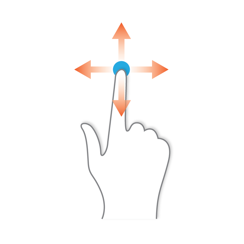 최초의[1] 포인팅 장치 제스처인 "드래그"는 애플이 매킨토시 및 리사 컴퓨터와 함께 제공된 마우스의 전용 "이동" 버튼을 대체하며 도입되었다. 드래그는 포인팅 장치 버튼을 누른 채 포인팅 장치를 움직이는 것을 포함하며, 소프트웨어는 이를 별도의 클릭 및 이동 동작과 구별되는 동작으로 해석한다. 대부분의 포인팅 장치 제스처와 달리, 특정 모양을 추적하는 것을 포함하지 않는다. "드래그" 동작은 매우 다양한 소프트웨어 패키지에 채택되었지만, 이만큼 성공적인 제스처는 거의 없었다.