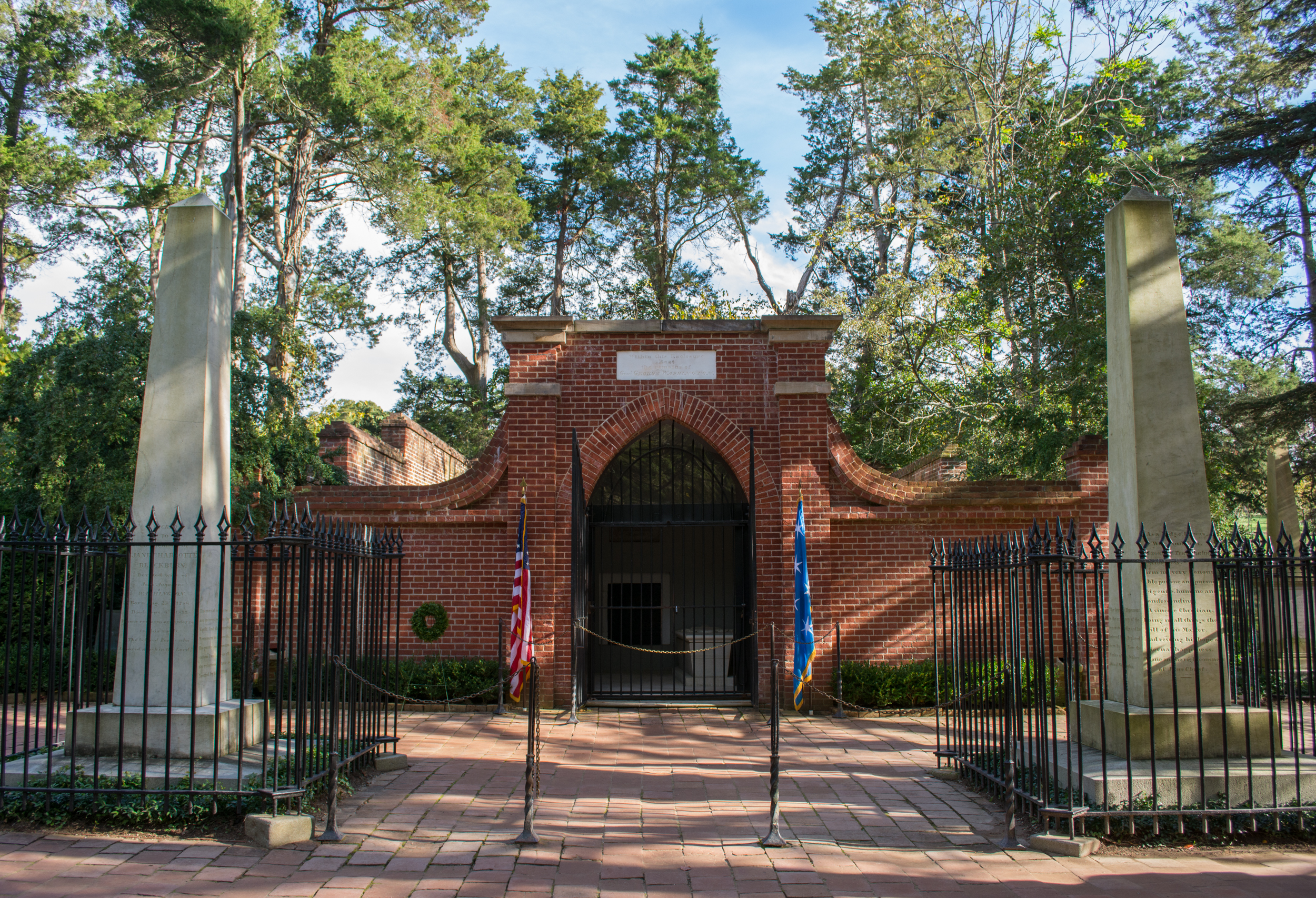 가족 묘소 입구에 있는 마사(왼쪽)와 조지(오른쪽) 워싱턴의 석관