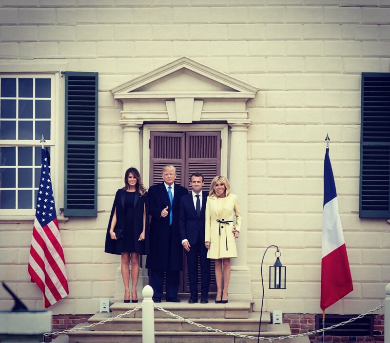 마운트 버넌을 방문한 도널드 트럼프 부부와 에마뉘엘 마크롱 프랑스 대통령 부부 (2018년)
