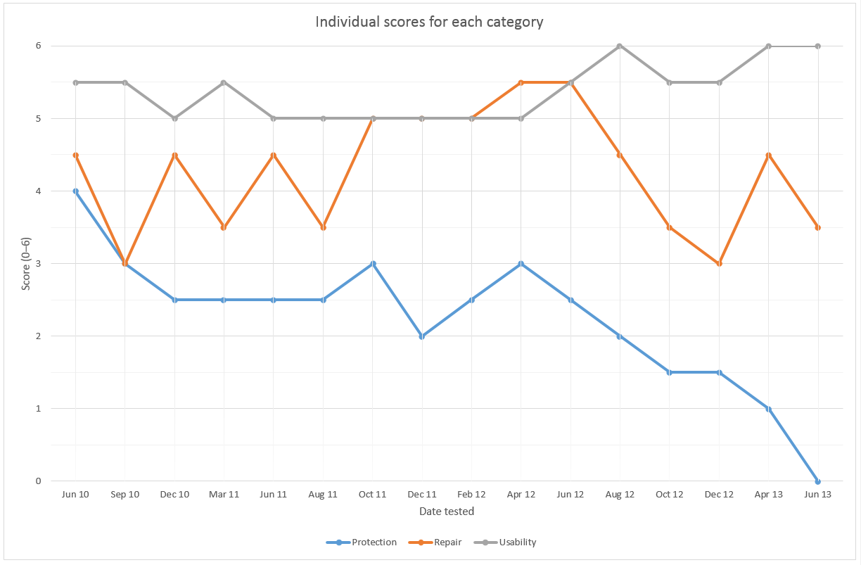 - 2013년 6월: MSE는 최저 보호 점수인 0점을 기록했다.