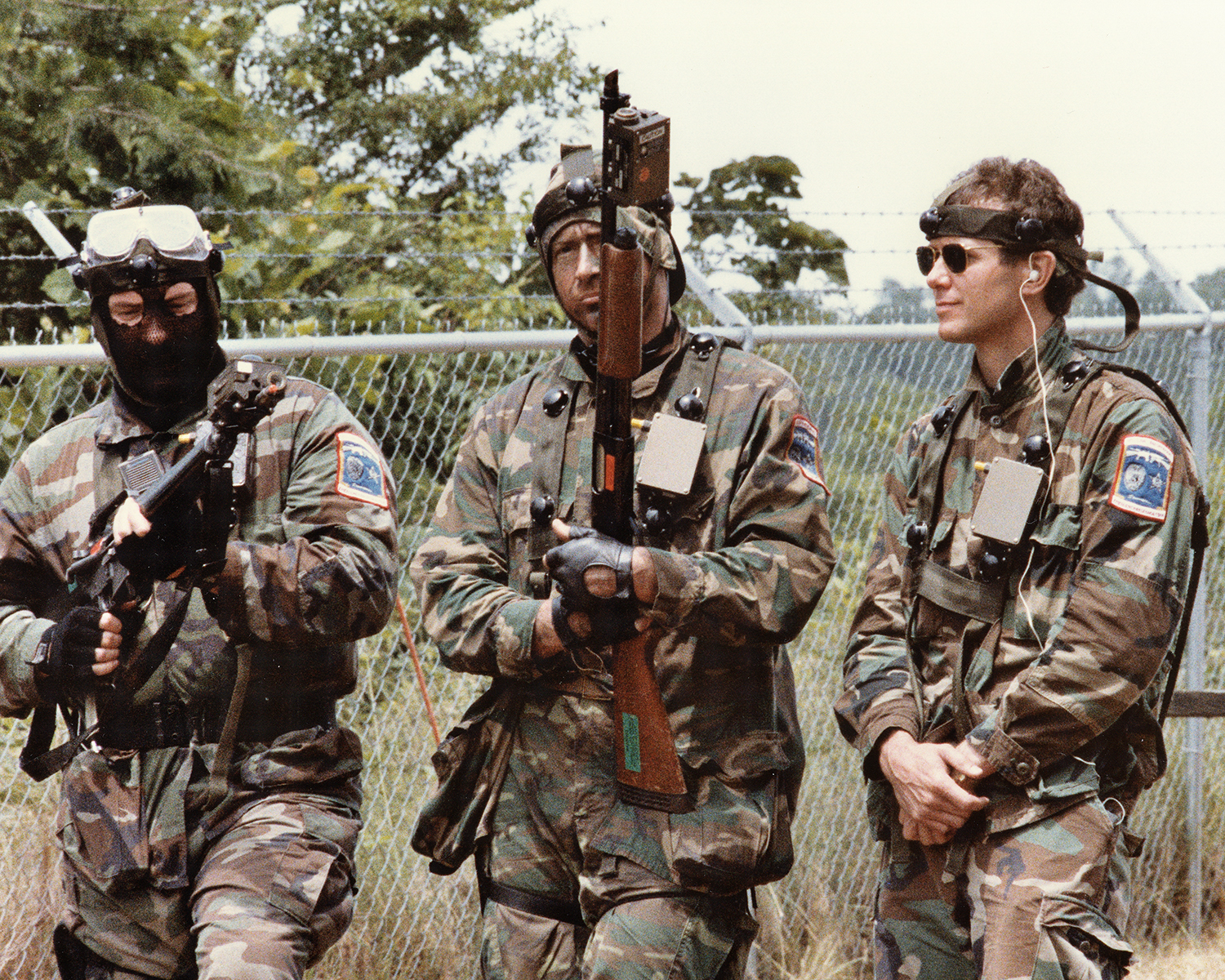 MILES(Multiple Integrated Laser Engagement System)는 미국 육군이 실전적인 직접 사격 및 대병력 훈련 능력을 강화하기 위해 1970년대 후반 제록스 일렉트로-옵티컬 시스템즈에 개발을 의뢰하면서 시작되었다.[2] 초기 시스템은 실제 무기에 레이저 발사기와 공포탄 발사 어댑터를 장착하고, 병사의 헬멧과 조끼에 센서를 부착하여 모의 교전을 가능하게 했다. 공포탄 발사 시 레이저가 발사되어 다른 병사의 센서에 감지되면 경고음이 울리는 방식이었으나, 피격 후에도 계속 사격이 가능하거나 병사가 임의로 시스템을 재설정하는 부정행위가 가능했고, 교전 데이터가 기록되지 않는 등의 문제점을 안고 있었다.