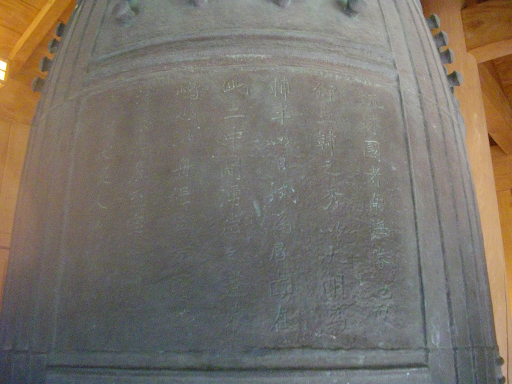 명문 후반부에는 불교의 흥륭을 기원하는 내용이 담겨 있는데, 이는 당시 내정이 불안정했던 쇼타이큐 왕 시대에 불교를 통해 나라를 안정시키려 했던 진호국가 사상을 반영하는 것으로 해석된다. 쇼타이큐 왕은 1457년 조선에서 대장경을 들여왔으며, 이에 대한 보답의 의미로 이 종을 만들어 세웠다고 전해진다. 명문의 대의는 다음과 같다.