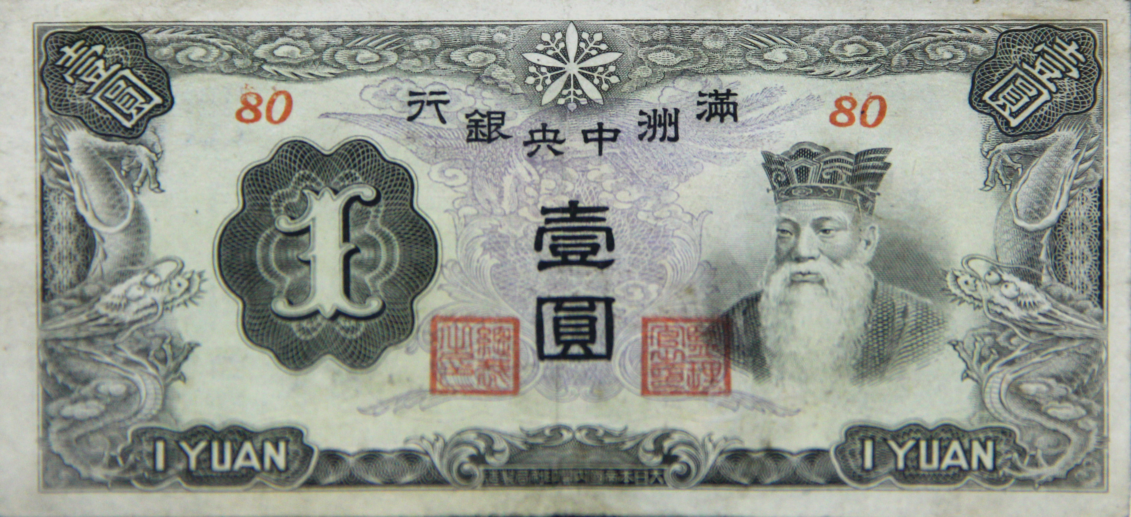 만주국 국폐는 중화민국의 통화와 마찬가지로 은본위제[5]로 시작했으며, 현 대양(위안스카이, 쑨원 불이라고 불린 은전)과 등가로 간주되었다.