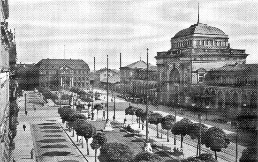 현재까지 일부가 남아있는 역 건물은 1871년에서 1876년 사이에 건설되었다. 1900년경부터 역을 확장하거나 이전하는 방안이 검토되었다. 1915년에는 기존 역을 확장하기로 결정했다. 1927년에는 역 정면을 철거하고 10m 더 거리 쪽으로 재건축하여 역 면적을 두 배로 늘렸다. 이 구조 조정 과정에서 외관을 원래 형태로 복원할지 여부에 대한 논쟁이 있었다. 결국에는 단순화된 형태로 재건축되었다. 제2차 세계 대전 중의 심각한 파괴와 그 이후의 외관 재건축으로 인해 다시 단순화되었고 장식 요소 없이 재건축되었지만 이전 형태를 연상시켰다.