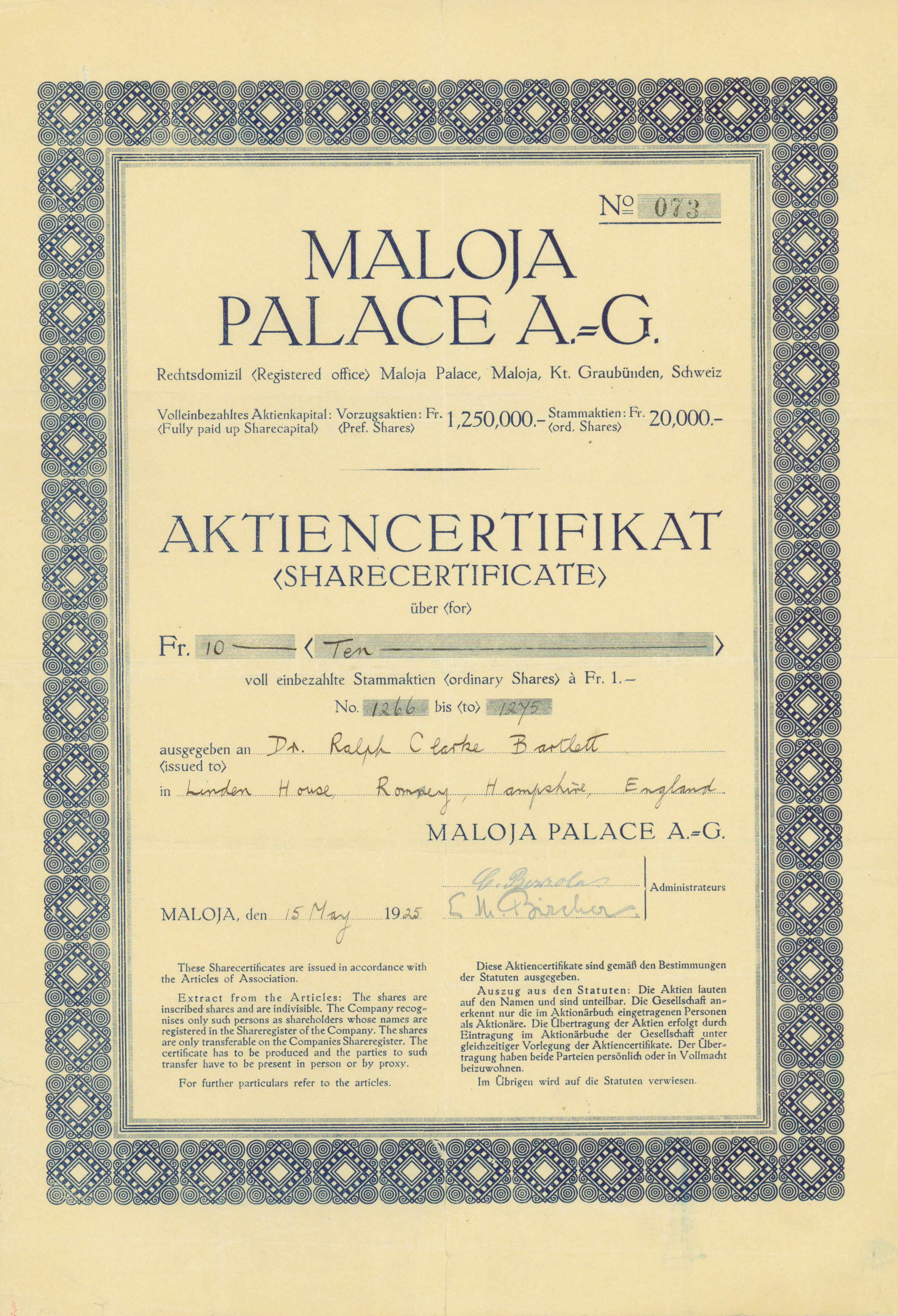 1962년 이 호텔은 홀리데이 호텔 말로야 AG(''Holiday Hotel Maloja'' AG) 소유였으며, 벨기에의 주요 건강 보험 회사인 크리스찬 공제조합(''Mutualités chrétiennes'')이 과반수 지분을 보유하고 있었다. 이 회사는 운영 회사인 Intersoc에 호텔 단지를 임대하여, 1949년부터 운영해 온 저렴한 스위스 휴가의 연속성을 보장했다. 이를 통해 (종종 경제적으로 어려운) 회원과 그 가족에게 여름과 겨울 모두 산악 생활과 하이킹의 즐거움을 처음으로 경험할 기회를 제공했다.그러나 1980년대에는 호텔 단지가 변화하는 숙박 수요와 점점 맞지 않게 되면서 예약이 꾸준히 감소했다. 브뤼셀과 쿠어 사이의 야간 열차 운행 중단도 또 다른 요인이었다. 이전의 다른 소유주들과 마찬가지로, 크리스찬 공제조합은 높은 개조 비용으로 인해 재정적으로 어려움을 겪었다.