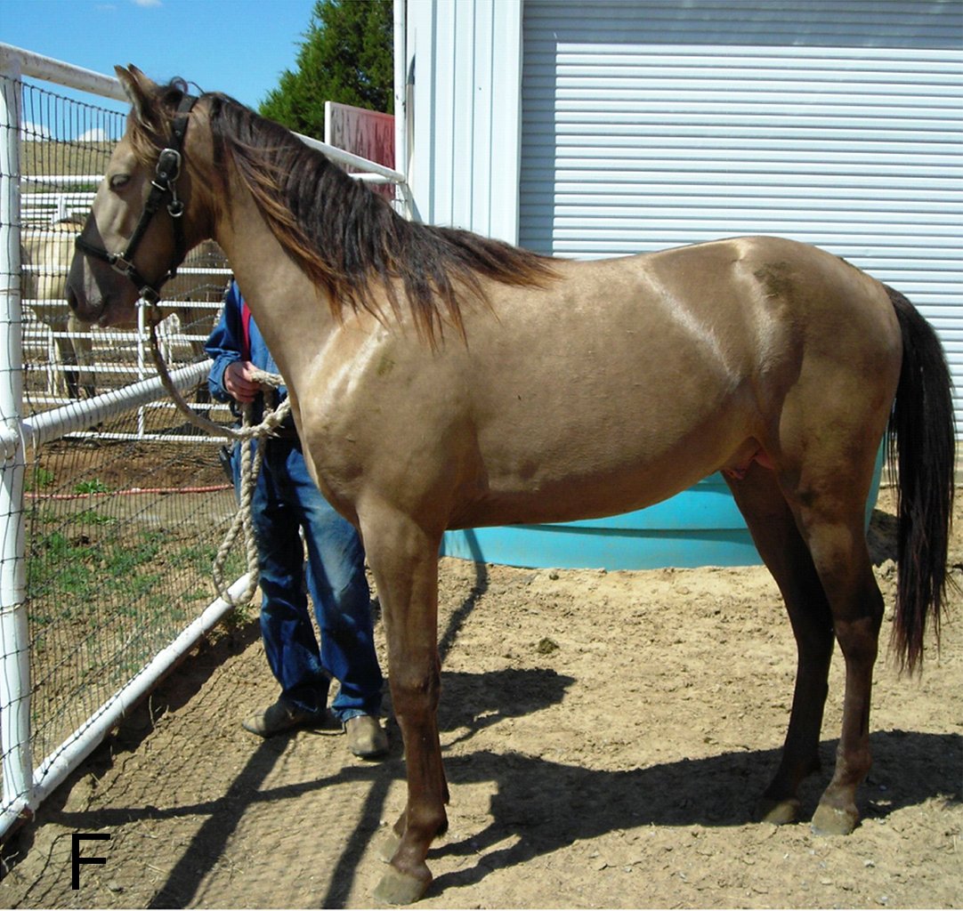 둔색 (Dun) | 둔 유전자의 작용으로 퇴색된 듯한 털색을 가진 말. |