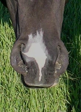 - 흰색 무늬 (White markings): 태어날 때부터 나타나는 흰색 반점들로, 각 말마다 고유하여 개체를 식별하는 데 사용된다. 흰색 무늬 아래에는 보통 분홍색 피부가 있지만, 일부는 아닐 수도 있다. 흰 털은 분홍색 피부 영역을 넘어 확장될 수 있다. 얼굴과 다리에 국한된 흰색 반점과 몸통 일부의 작은 반점은 특정 유전자의 최소 표현으로 간주된다.