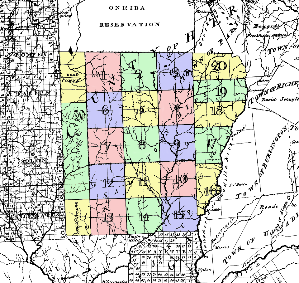 1788년, 조지 클린턴 주지사의 대표들은 오네이다족을 설득하여 그들 영토의 일부를 뉴욕 주에 양도하도록 했다. 이는 "클린턴 구매" 또는 "20개 타운십"이라고 불렸다.